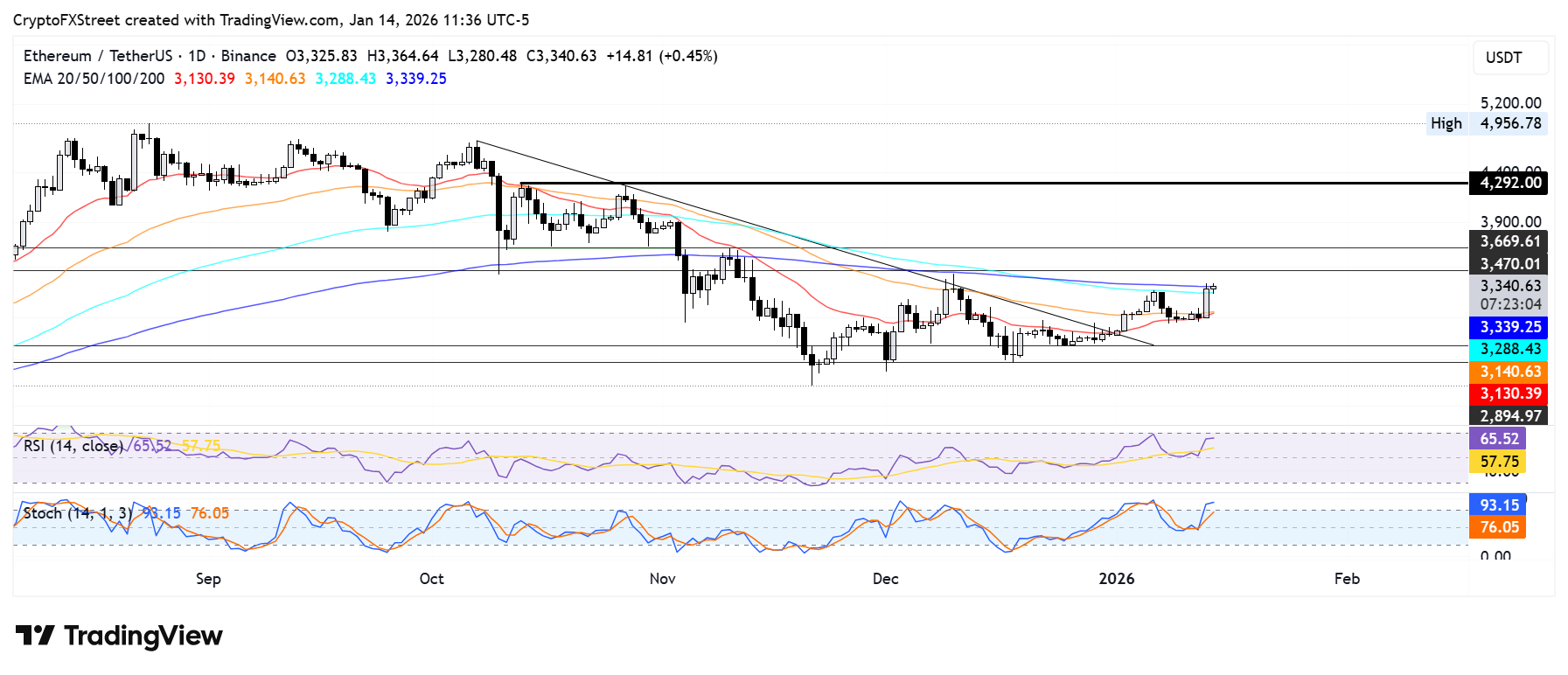 Ethereum price today: $3,340