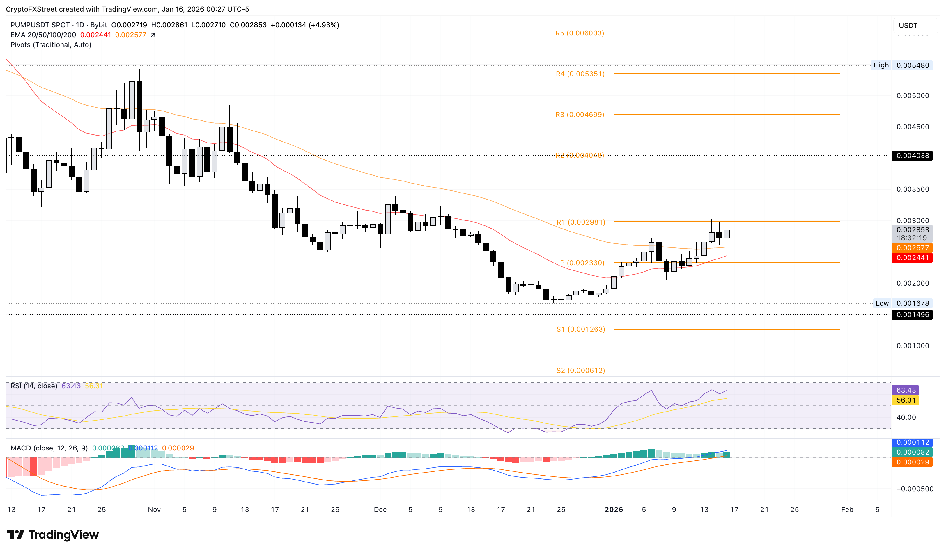 If PUMP closes the day above $0.003000, it would keep the near-term bias supported and put the R2 Pivot Point at $0.004048 in focus as the next hurdle.