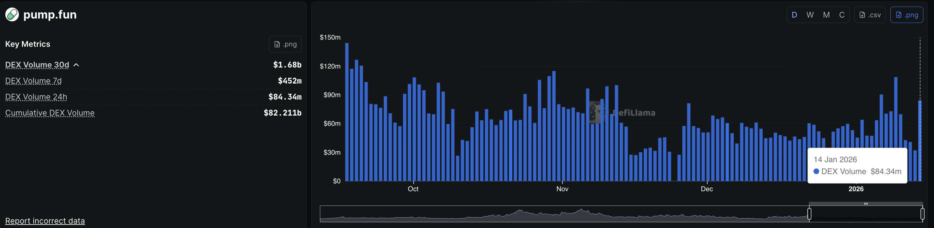 Pump.fun released a callout feature on Thursday for creators to share listed coins with their followers, which could boost the social interest and trading activity on the platform. The release aligns with a recovery in DEX volume to $84.34 million, after a steady decline earlier this week.
