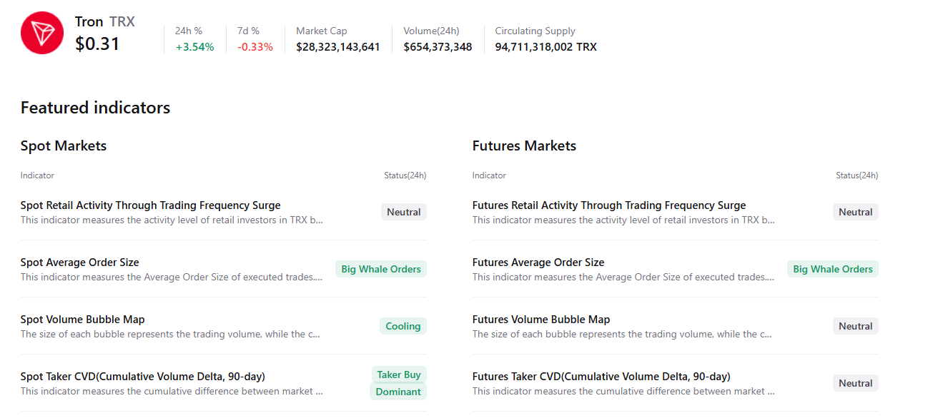 CryptoQuant's summary chart below supports a positive outlook, as TRX’s spot and futures markets show large whale orders, cooling conditions, and buy-side dominance, signaling a potential rally ahead.