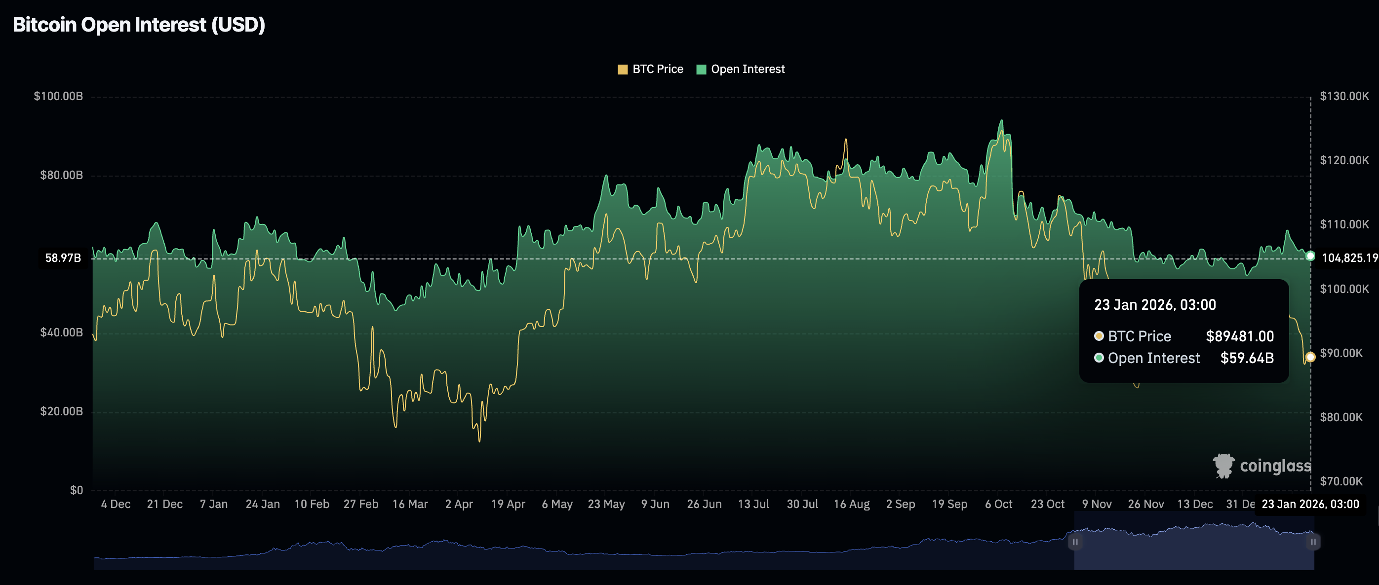Demand for Bitcoin has remained largely subdued since the October 10 crash, with futures Open Interest (OI) averaging $59.64 billion on Friday, down from $60.13 billion the previous day, and $66.17 billion on January 15.