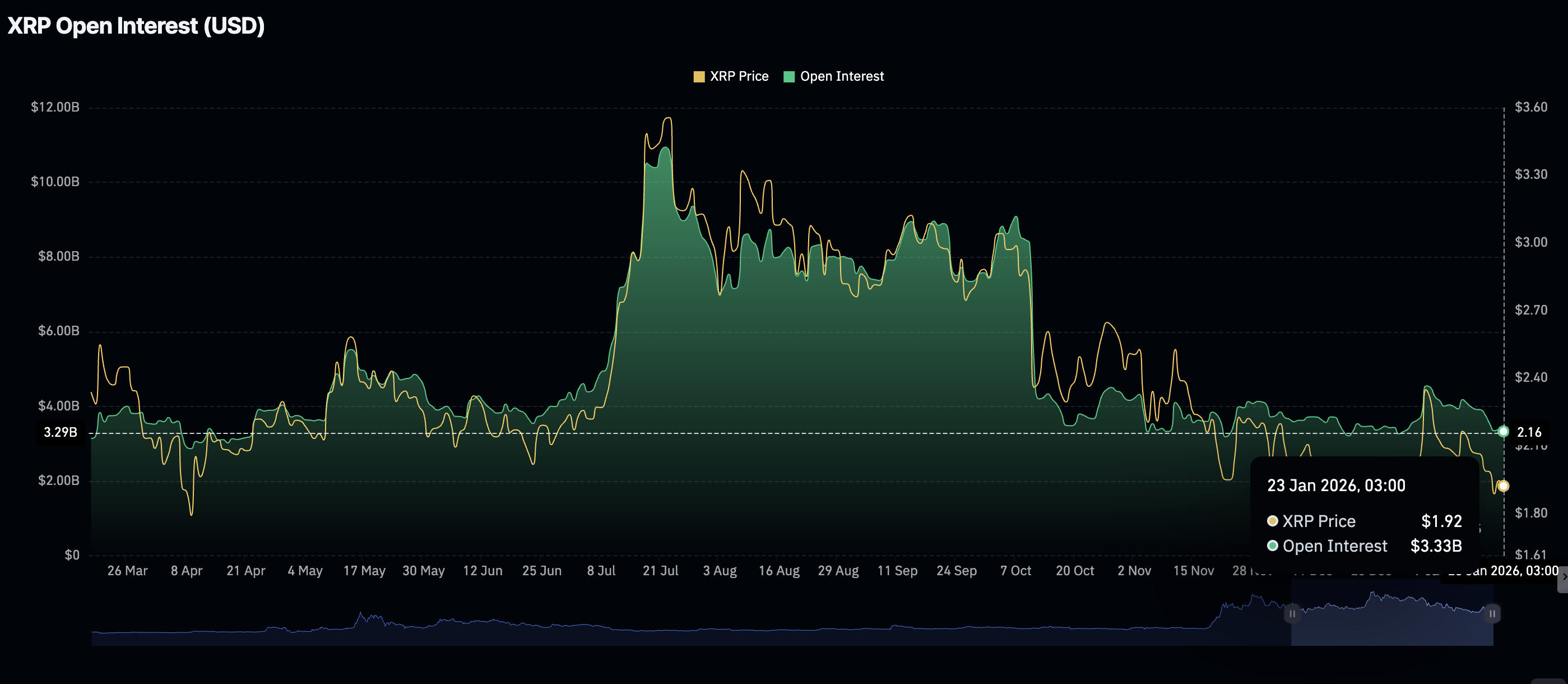 Retail interest weakened significantly since the October crash, which liquidated over $19 billion in crypto assets in a single day. The headwinds affected XRP derivatives, as future Open Interest (OI) tumbled from $8.36 billion on October 10 to $3.33 billion on Friday.