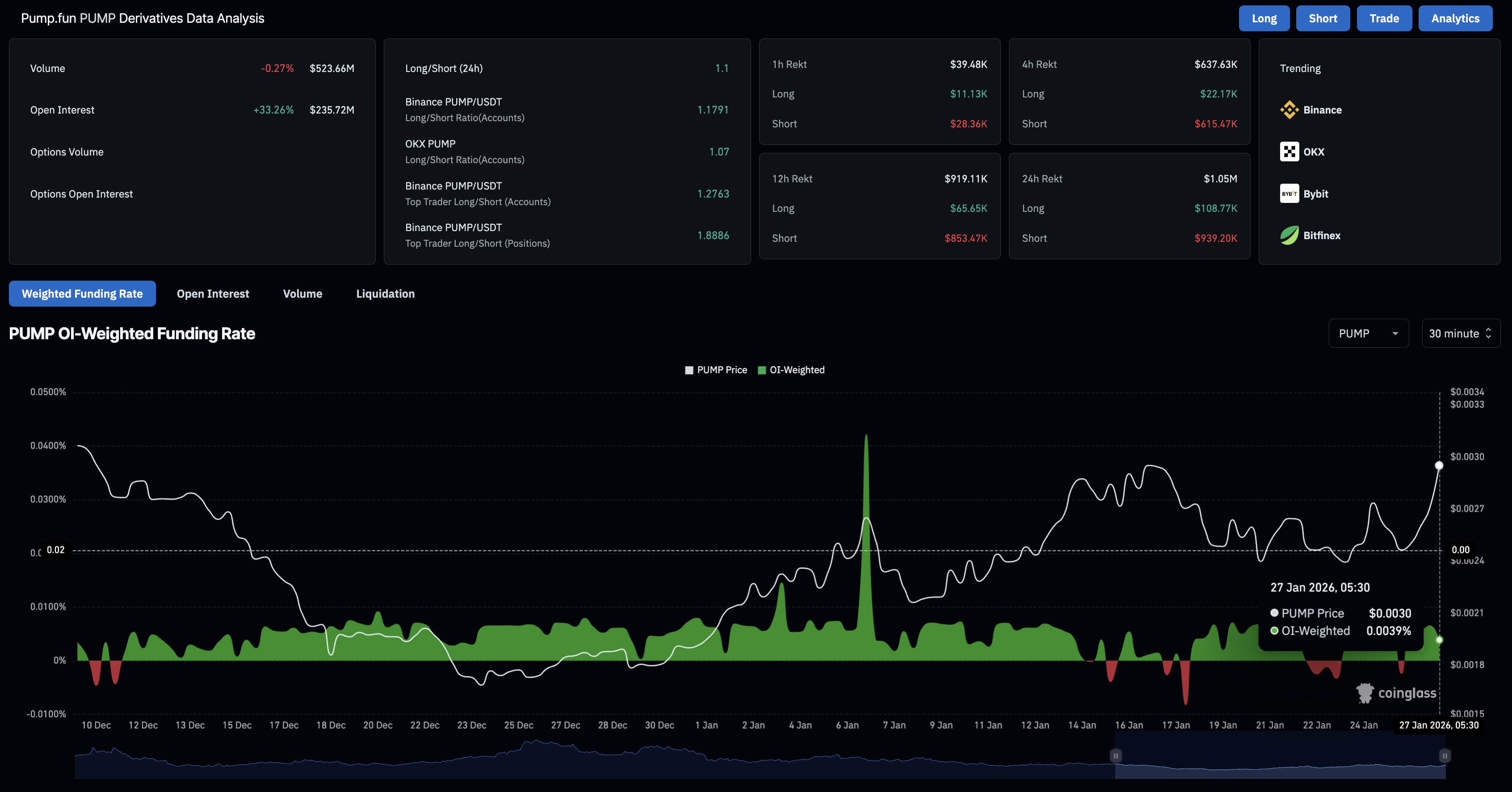 Meanwhile, the retail demand is steadily increasing, evidenced by the 33% jump in PUMP futures Open Interest (OI) to $235.72 million over the last 24 hours. This increase in capital inflow reflects a risk-on sentiment among investors anticipating further upside in PUMP.