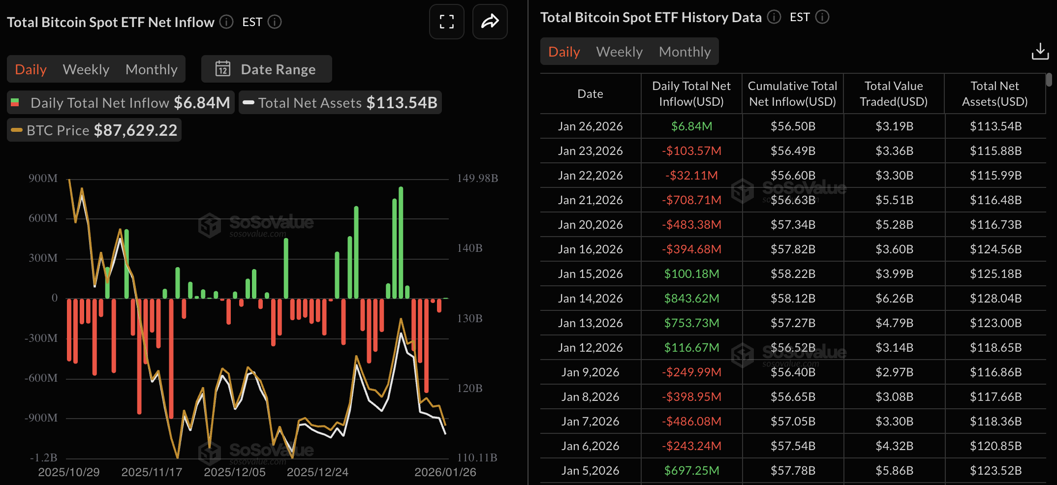BTC ETFs data. Source: Sosovalue
