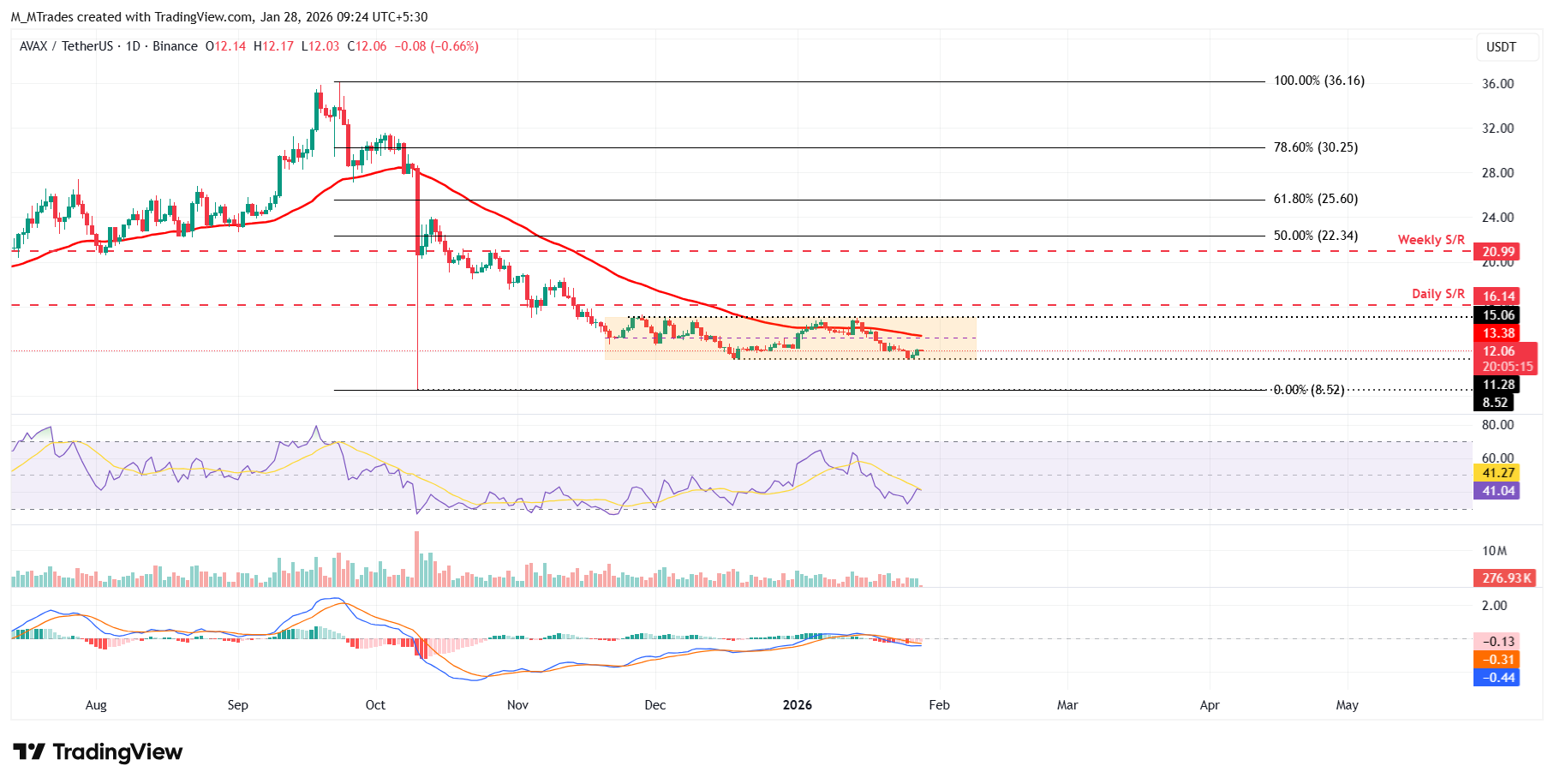 Avalanche (AVAX) price holds above $12 at the time of writing on Wednesday, after rebounding from the lower boundary of its horizontal parallel channel, signaling early signs of stabilization. The launch of Avalanche spot Exchange Traded Funds (ETFs) by VanEck this week on Nasdaq signals improving market sentiment. In addition, supportive on-chain and derivatives data for AVAX suggest a potential recovery if bullish momentum builds.