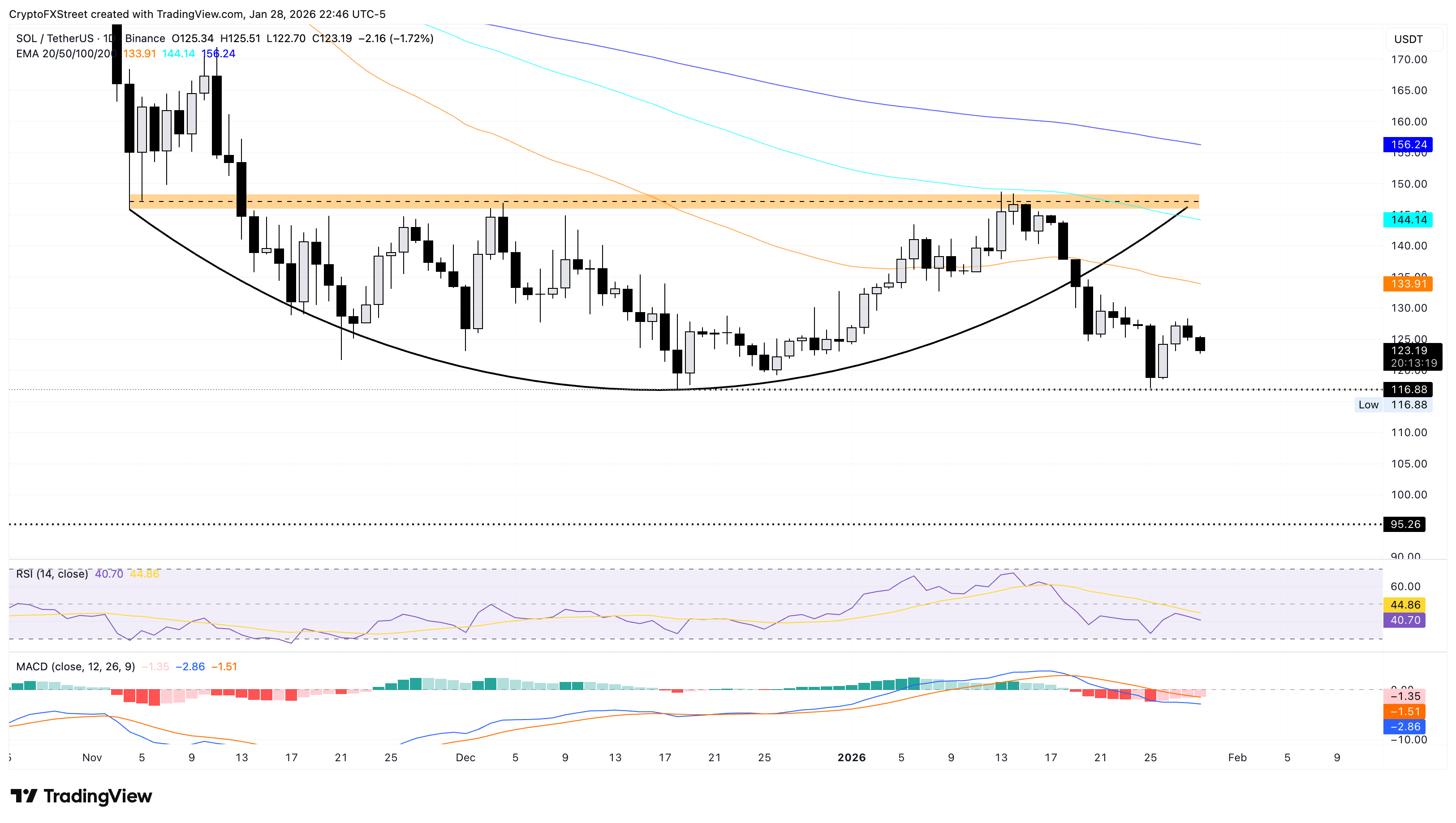 Immediate support for Solana is at $116, which previously limited downside moves on Sunday and December 18.