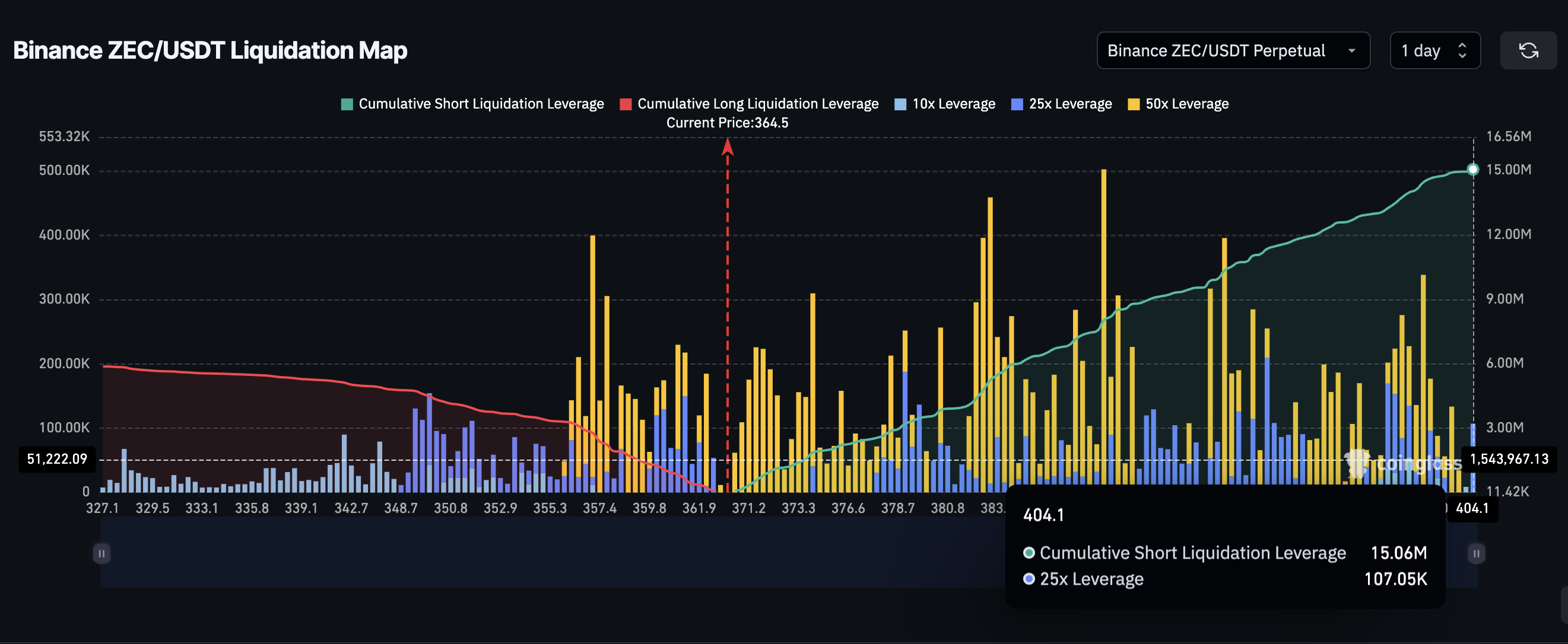 Trên cặp ZEC perpetual của Binance, lượng đòn bẩy ở phía short bị thanh lý đã lên tới hơn 15 triệu USD, trong khi đó phía long chỉ khoảng 6 triệu USD. Tỷ lệ vị thế short cao gấp 2.5 lần long, cho thấy các trader nghiêng về xu hướng giảm mạnh hơn là đi ngang. Sự mất cân bằng này thường xuất hiện khi thị trường tin rằng vùng hỗ trợ sẽ bị phá vỡ.