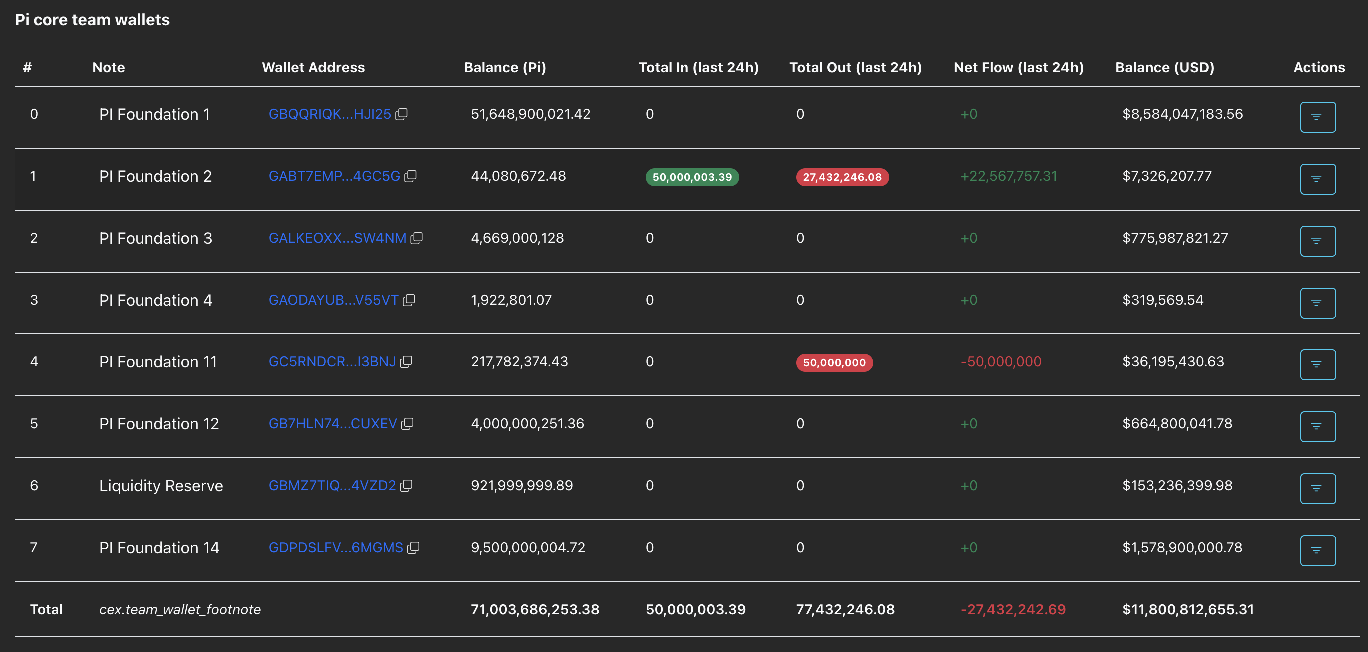 Pi core team wallets data. Source: PiScan