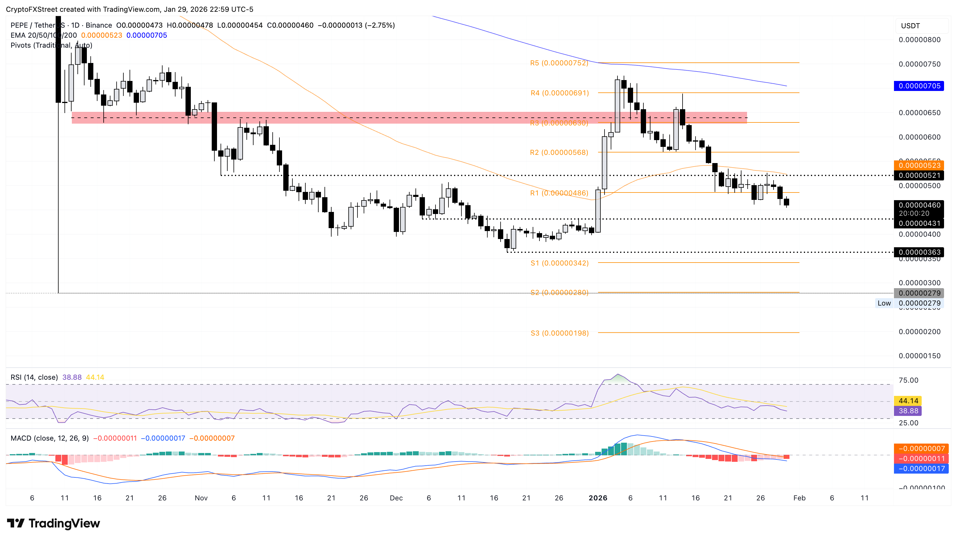 Similarly, the momentum indicators on the daily chart indicate that PEPE is under intense selling pressure.