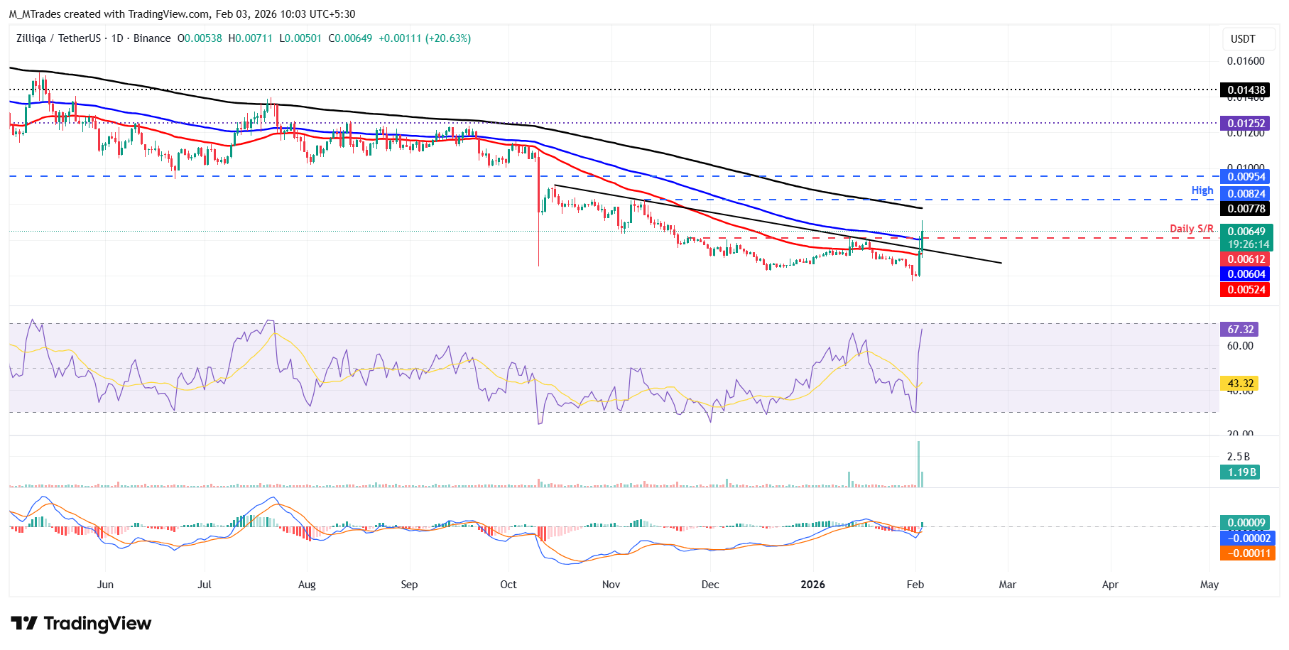 If ZIL faces a correction, it could extend the decline toward the 50-day EMA at $0.005.