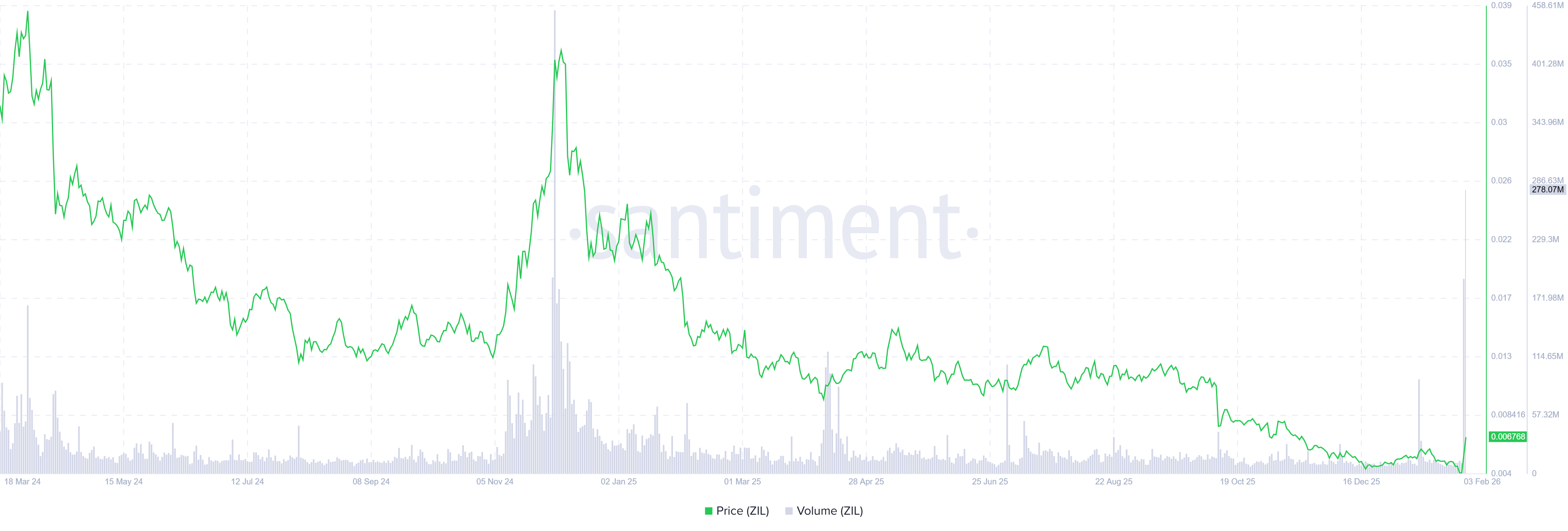 Santiment data indicates that the Zilliqa ecosystem’s trading volume (the aggregate trading volume generated by all exchange applications on the chain) reached $278.07 million on Tuesday, the highest volume since December 2024. This volume rise indicates a surge in trader interest and liquidity in Zilliqa, boosting its bullish outlook.