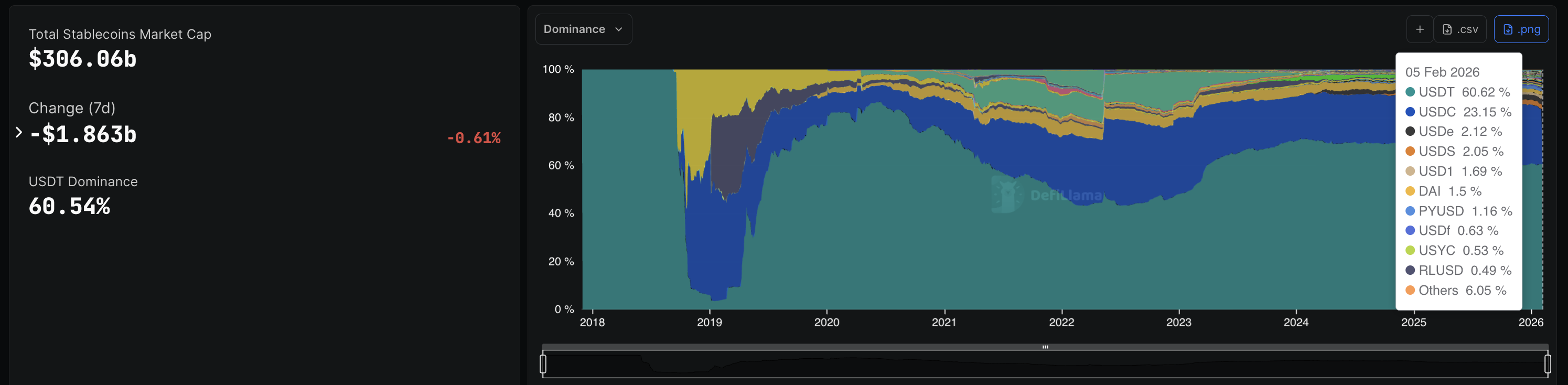 Tether’s USDT stablecoin, which is pegged 1:1 to the US Dollar, accounts for more than 60% of the cryptocurrency stablecoin market capitalization, which stands at $306 billion on Thursday.