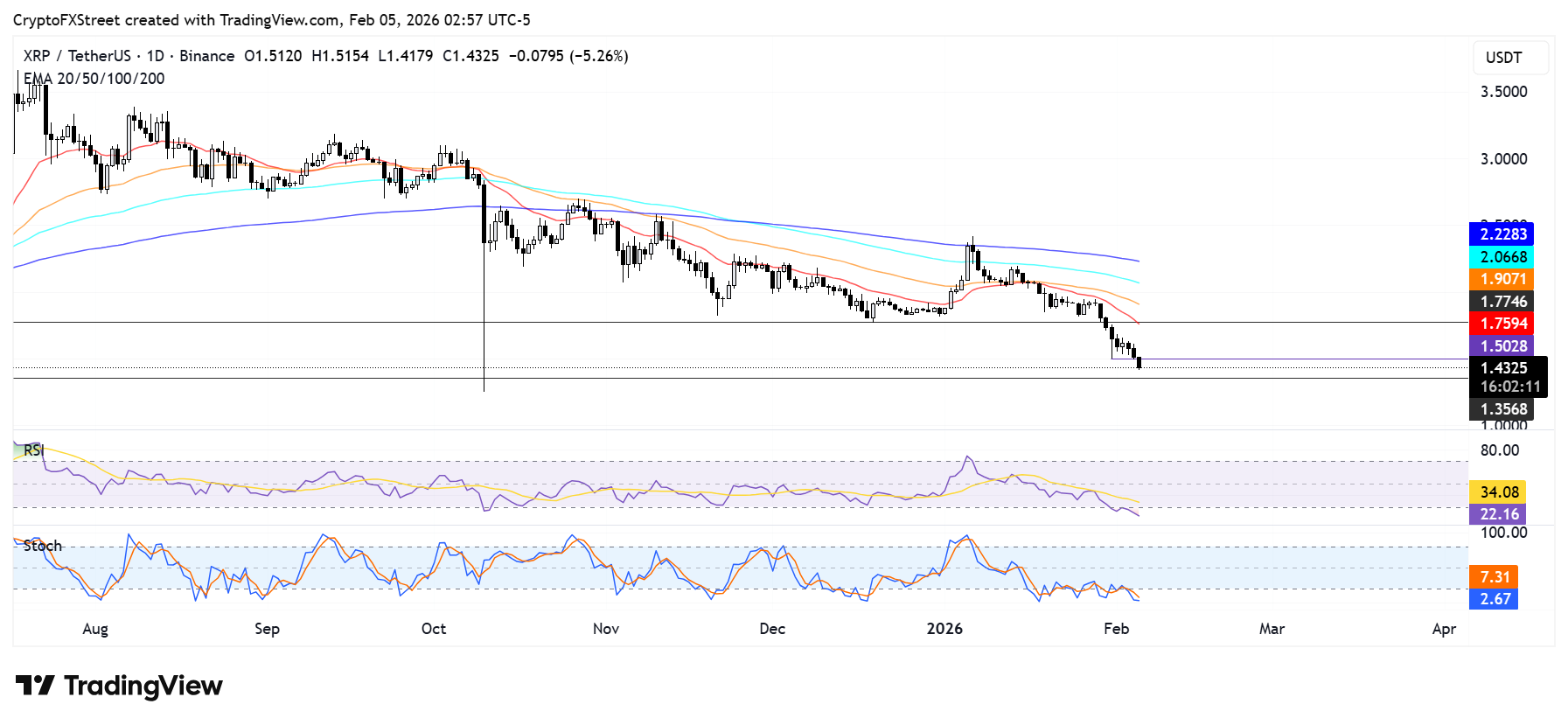 XRP is trading at $1.44 as of writing, down nearly 10% over the past 24 hours.