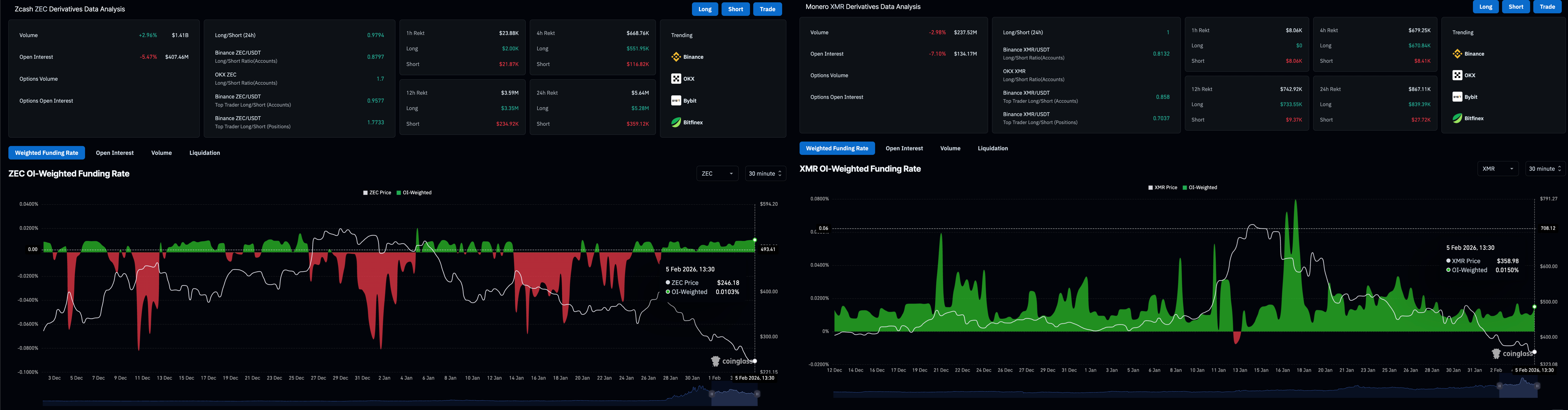 ZEC and XMR derivatives data. Source: CoinGlass