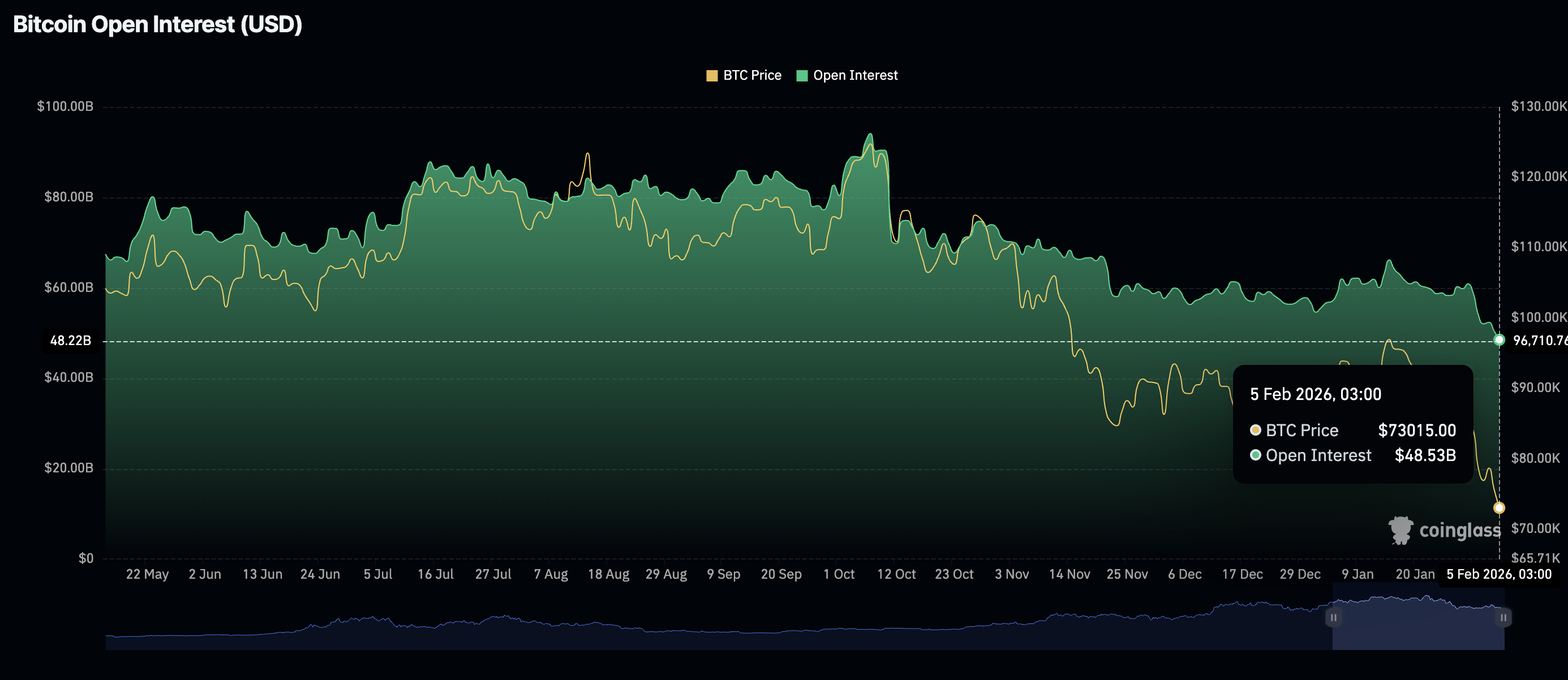 Bitcoin is facing a major exodus of retail investors, as futures Open Interest (OI) falls to $48.53 billion on Thursday, from $50.5 billion the previous day.