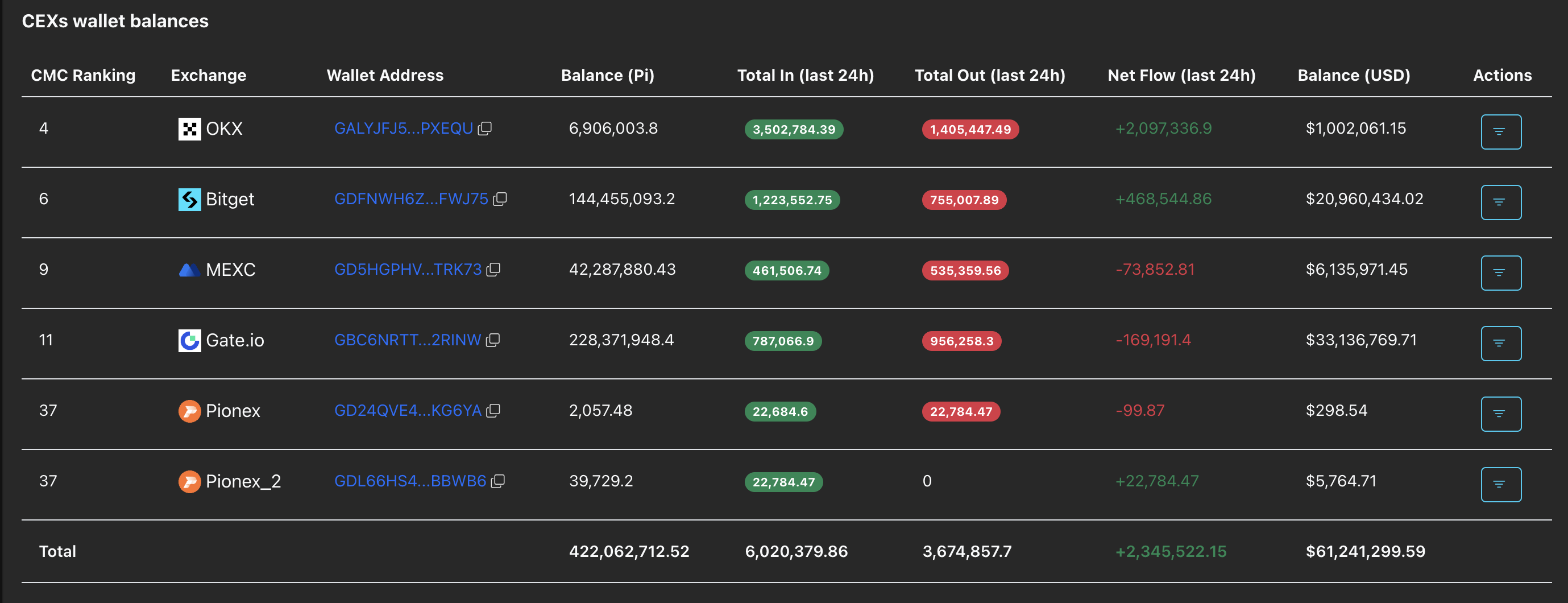 Pi Network CEXs wallet balances. Source: Piscan