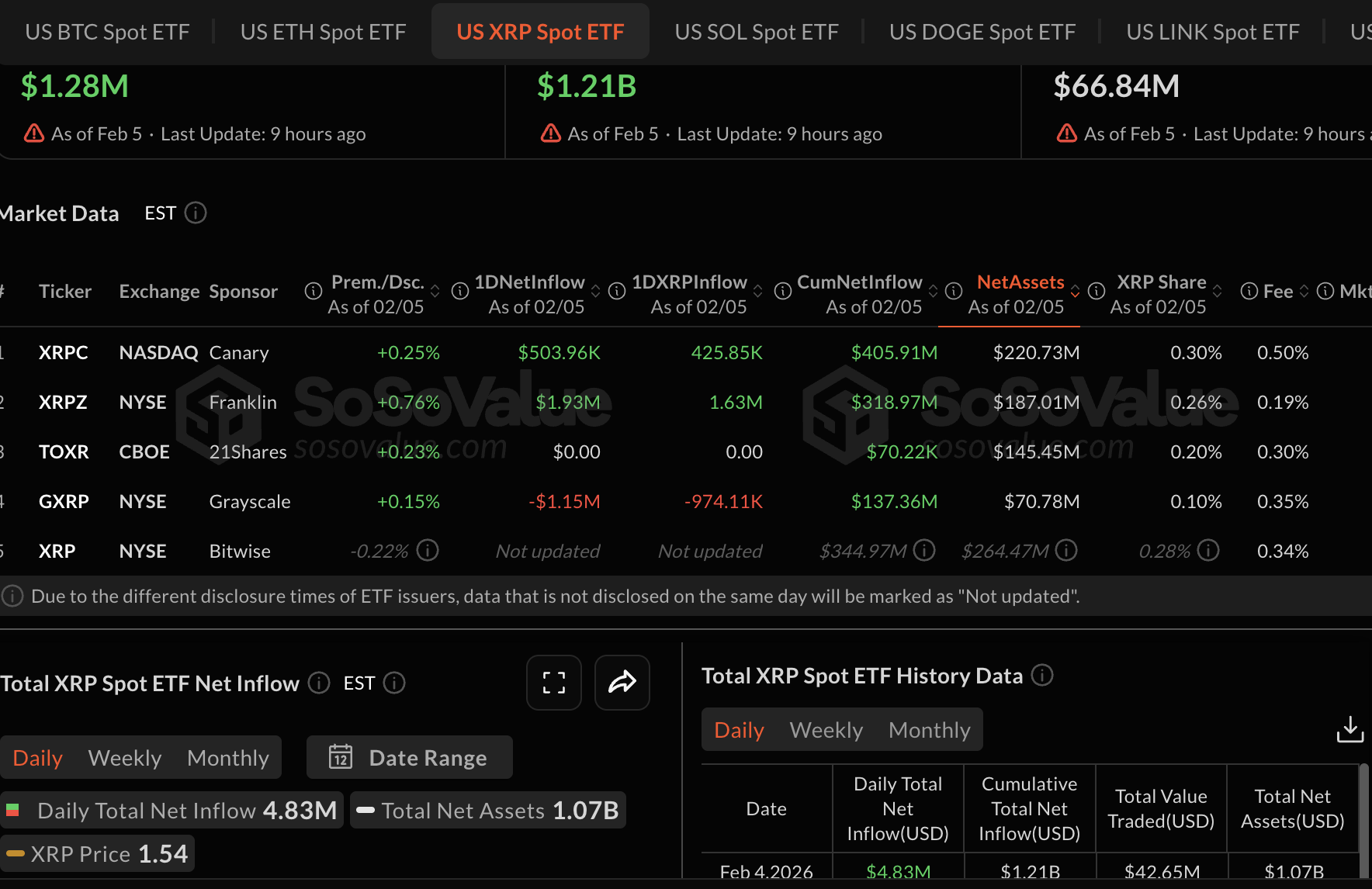 Institutional investors continued accumulating XRP spot Exchange-Traded Funds (ETFs), with $1.28 million in inflows on Thursday despite ongoing price volatility.