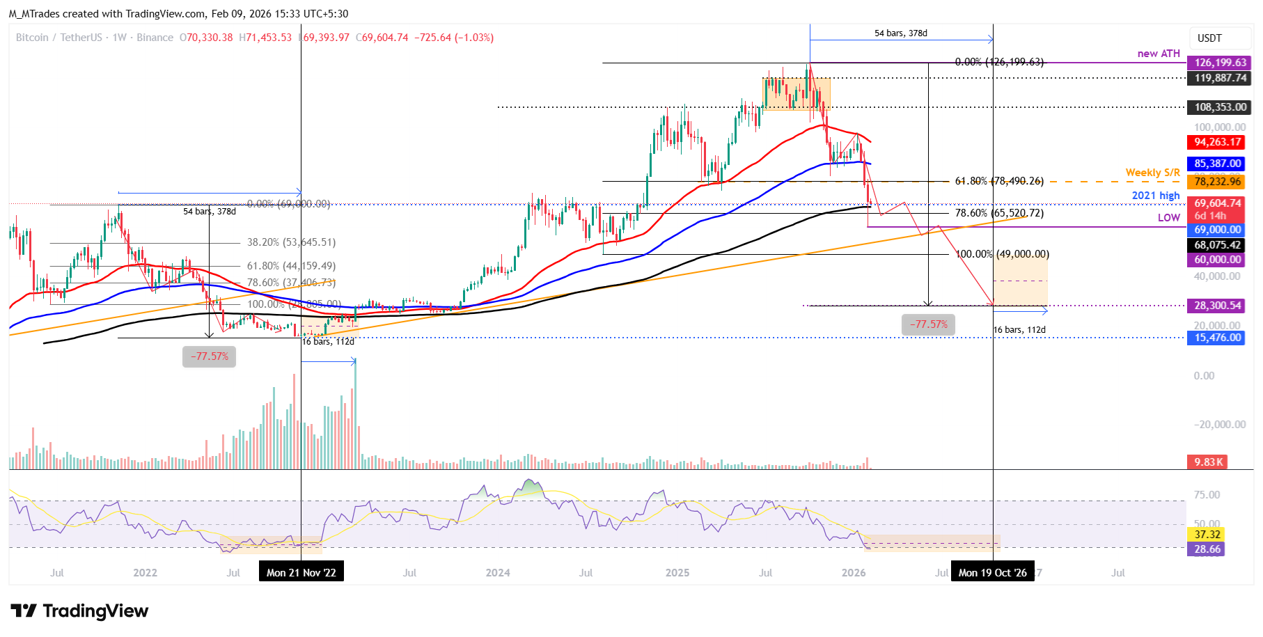 If the current regime follows the 2021-2022 pattern, BTC could see further corrections, reaching a low of $28,300 (77.51% from the 2025 ATH) on October 19, 2026. Then consolidate for the next 112 days before the start of another bull cycle (similarly seen in 2023 as discussed above).