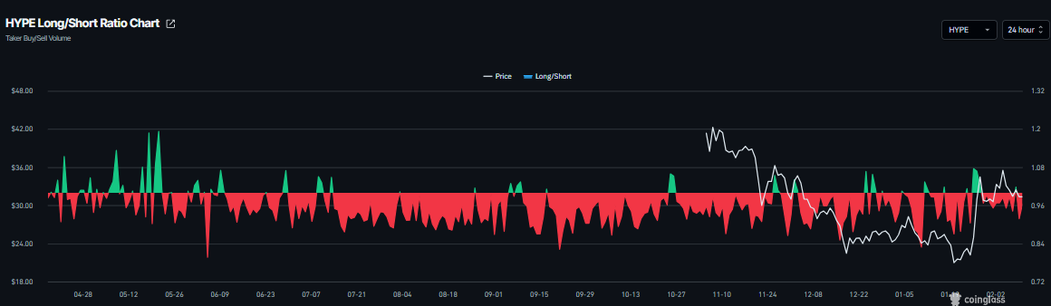HYPE long-to-short ratio chart. Source: Coinglass