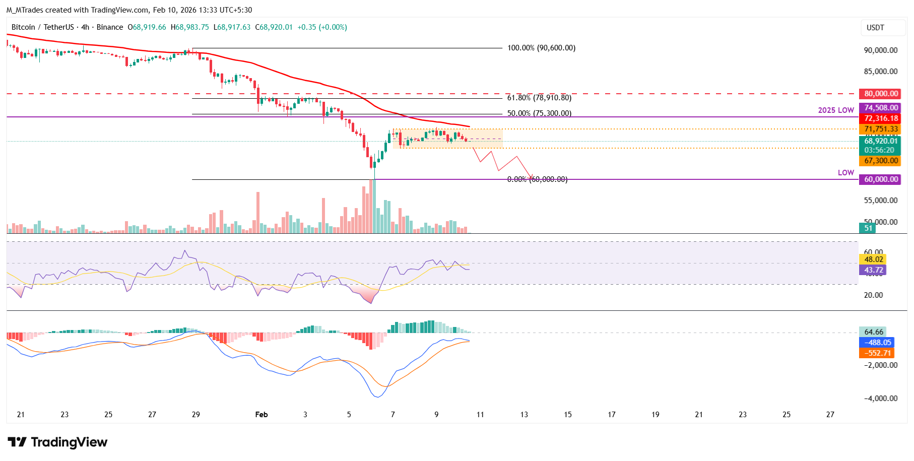 Bitcoin Price Forecast: BTC slips below $69,000 as crypto market shows cautious stabilization