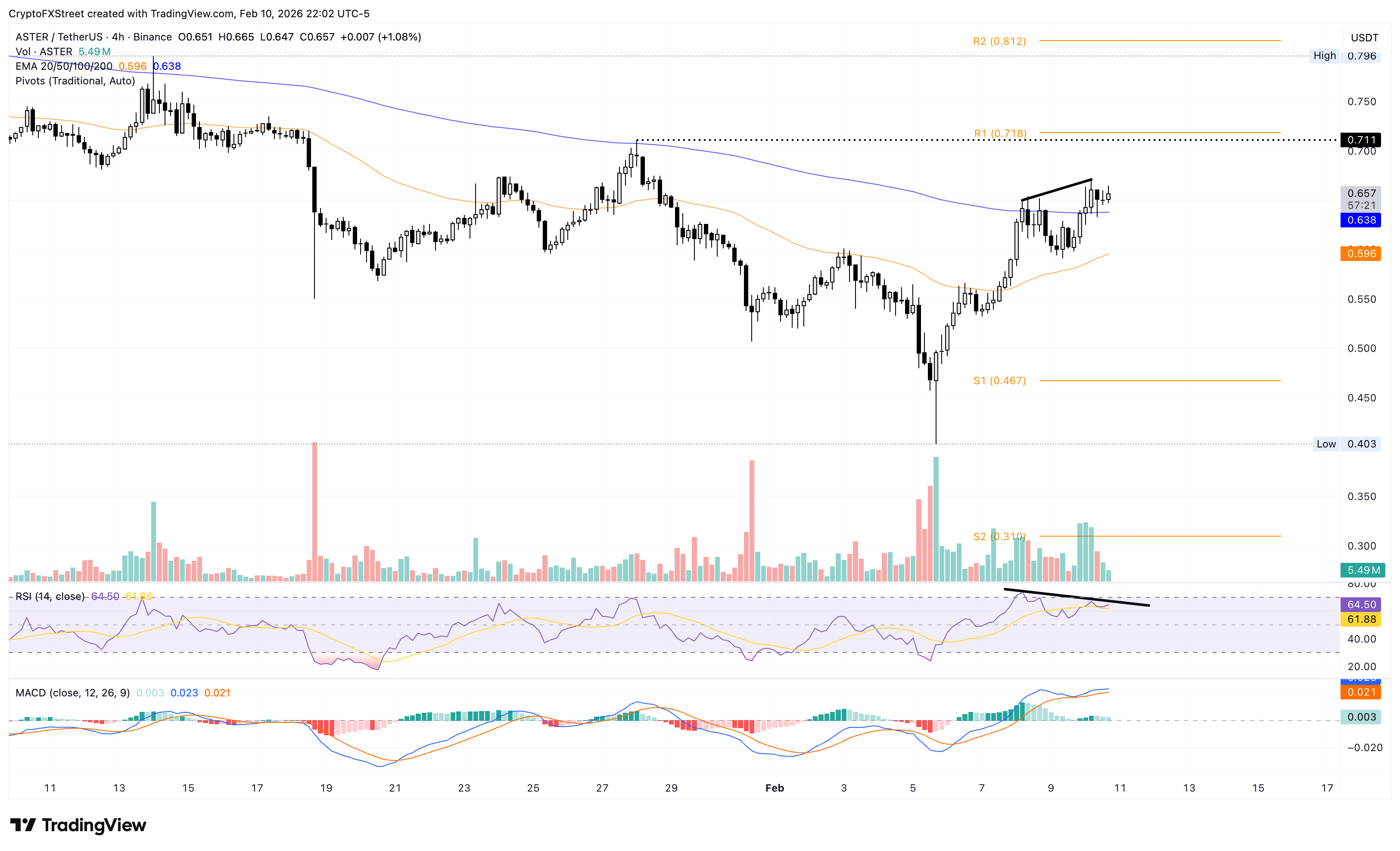 The immediate resistance for Aster lies between $0.711 and the R1 pivot point at $0.718. A decisive close above this range could boost the rally to the R2 pivot point at $0.812.