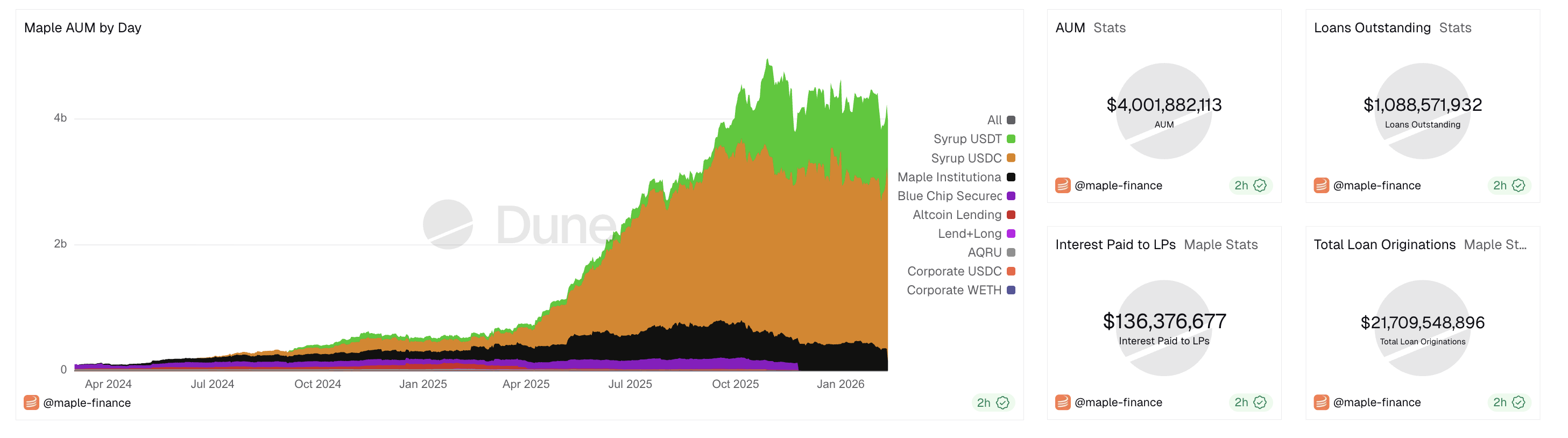 Additionally, the protocol's AUM has exceeded $4 billion, while outstanding loan balances account for $1.08 billion. The steady revenue and rising AUM suggest that Maple Finance's ecosystem continues to expand amid increasing market demand.