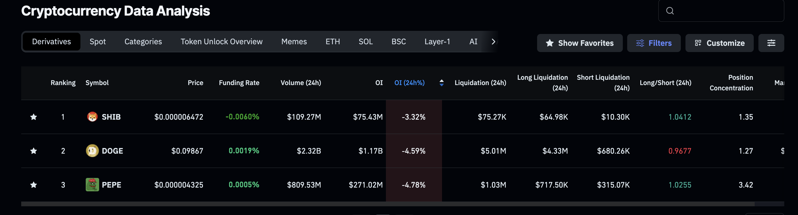 Meme coins, including Dogecoin (DOGE), Shiba Inu (SHIB), and Pepe (PEPE), are under pressure on Tuesday, extending Sunday’s decline. The derivatives data show substantial outflows from DOGE, SHIB, and PEPE futures Open Interest, primarily driven by long-side-skewed liquidations. Technically, the meme coins are facing downside risk as selling pressure resurfaces.