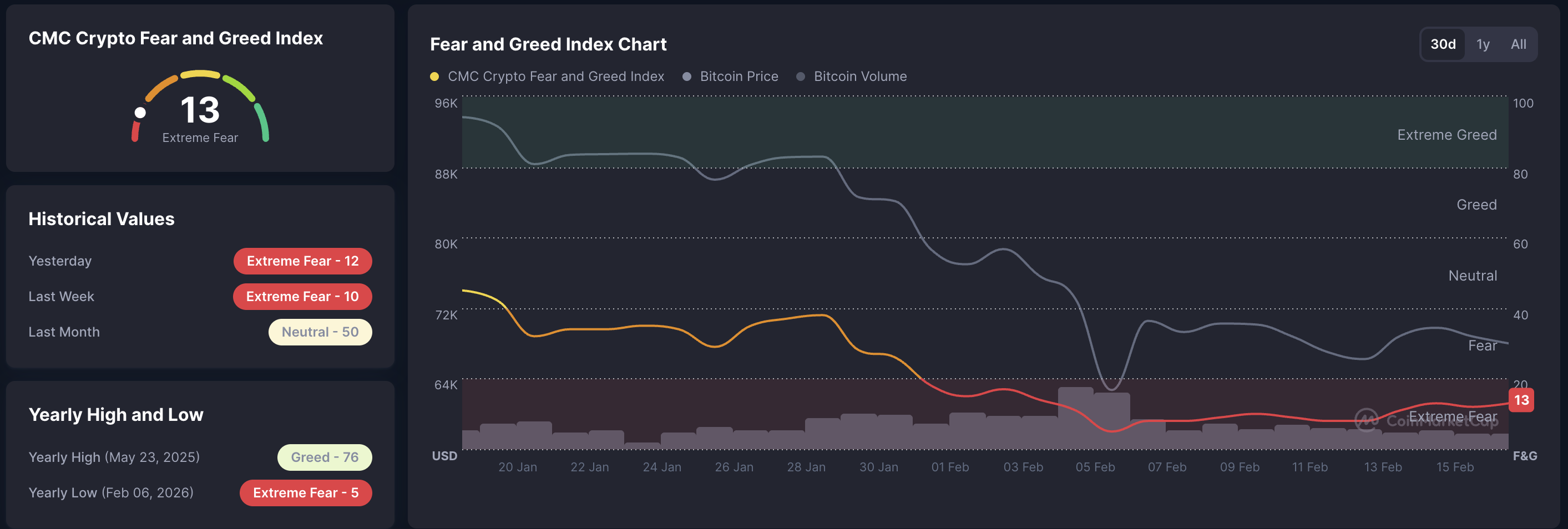 Meme coins are struggling to sustain their retail surge amid broader cryptocurrency market volatility. The Crypto Fear and Greed Index stands at 13 on Tuesday, reflecting extreme fear in the market.