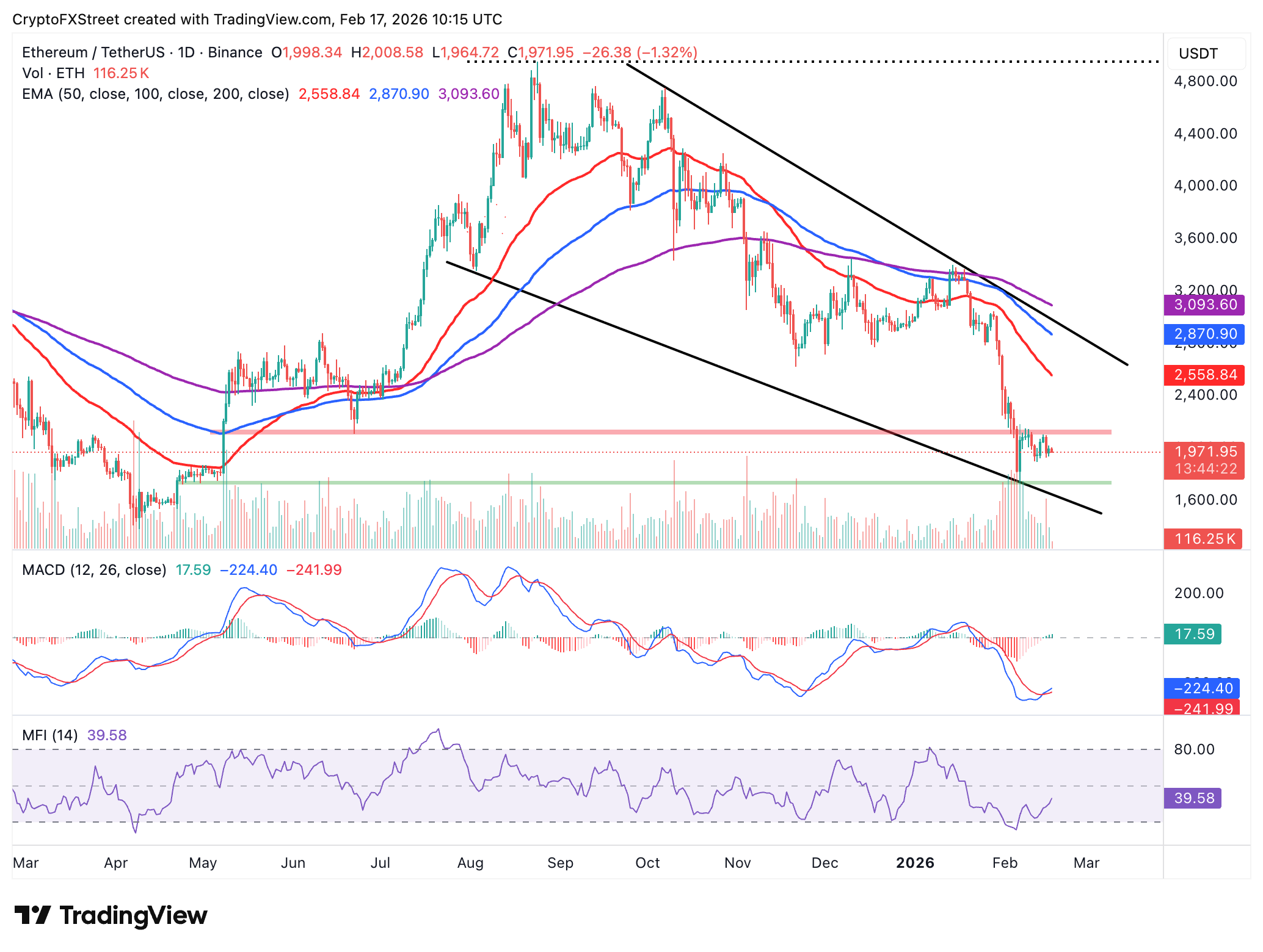 However, the MACD indicator remains above its signal line on the daily chart, suggesting bullish momentum could prevail. If traders interpret the expanding green histogram bars as a signal to increase exposure, a steady price increase could propel ETH above $2,000.