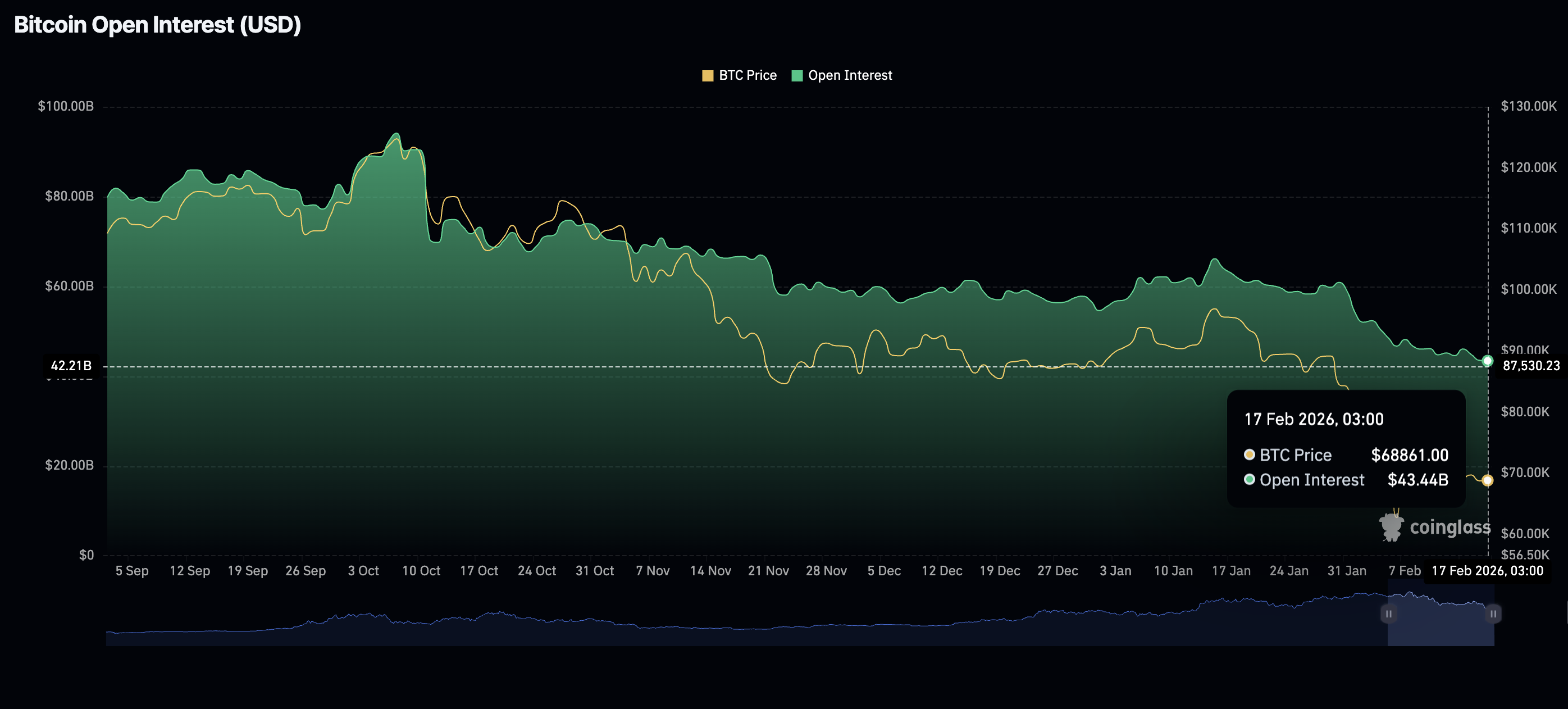 Bitcoin's 46% drop from its record high of $126,199 has kept most retail traders on the sidelines. Moreover, weak rebounds lack follow-through momentum amid extended risk-off sentiment.