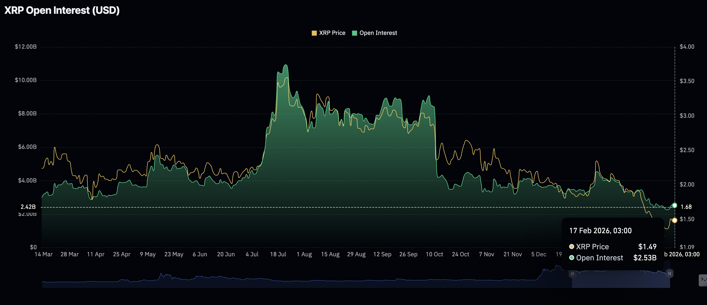 Meanwhile, the XRP derivatives market signals potential stability at lower levels of $2.53 billion on Tuesday. The futures OI averaged $2.56 billion on Monday, underpinning the trader interest in the remittance token. Extended stability could boost risk appetite and support a steady price increase.