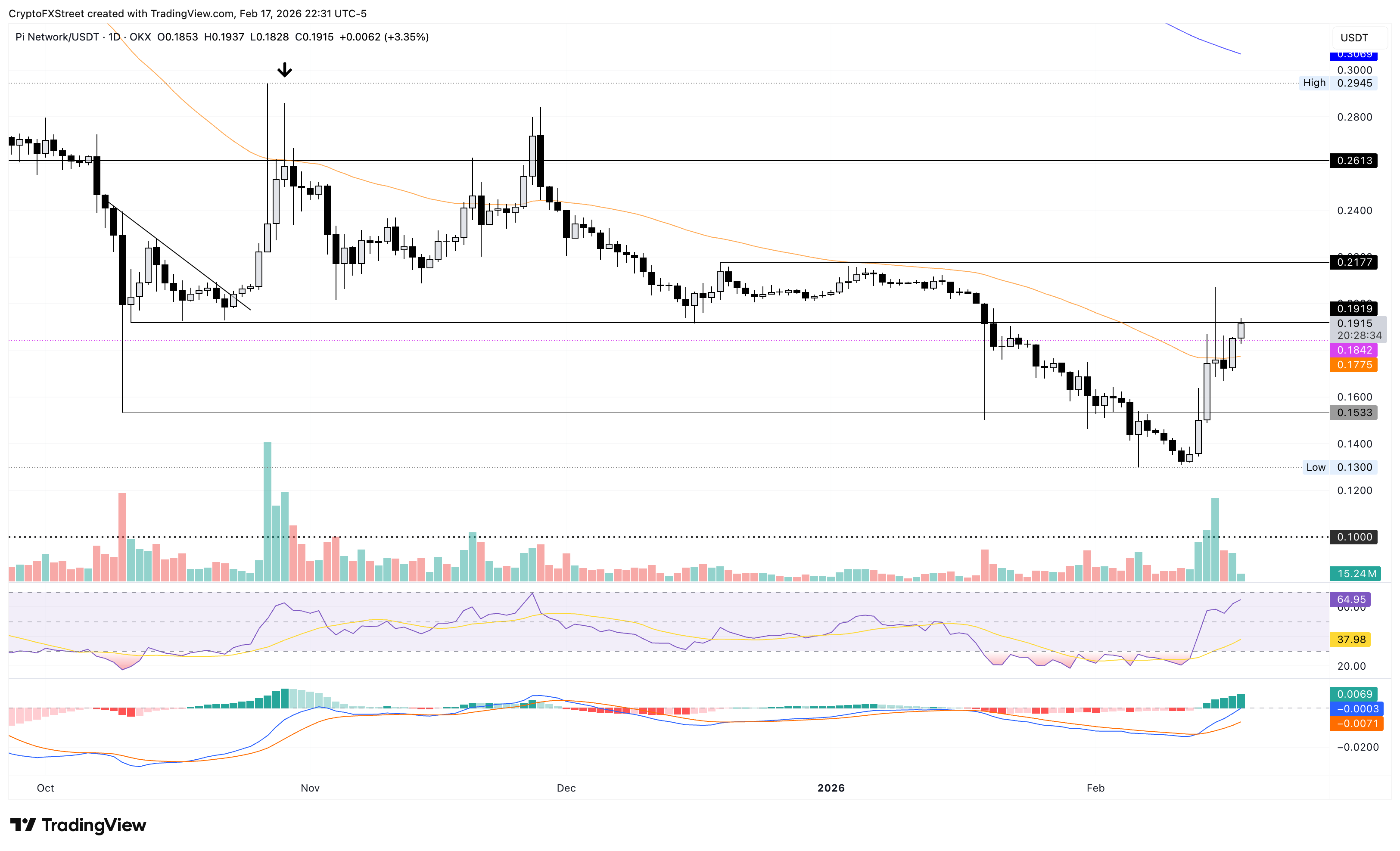 The PI token is approaching the $0.1919 resistance level marked by the October 11 low, which previously served as crucial support on multiple occasions. A decisive close above this level could extend the rally to the $0.2177 resistance, aligning with the December 19 high.