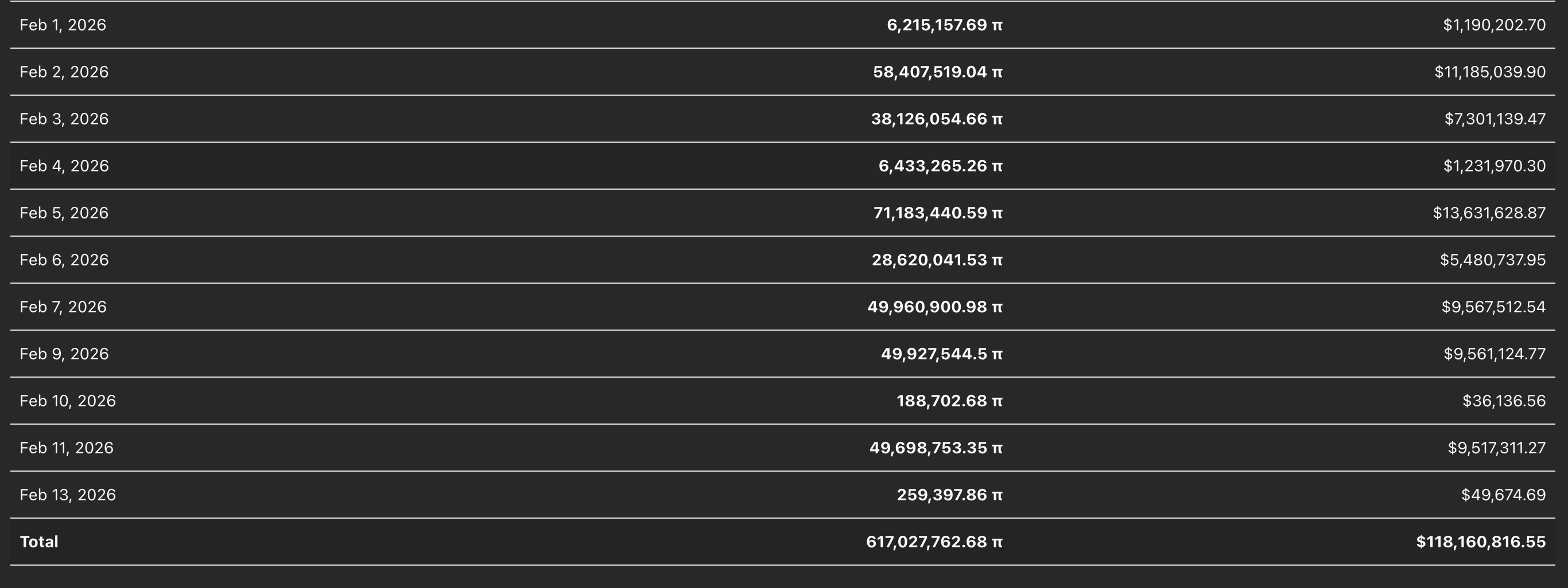 Pi scan data show that the mainnet migration, which allows users to deposit PI tokens from testnet after completing Know Your Customer (KYC) verification, has been inactive since Friday, with the last daily migration of 259,397 PI tokens. This has reduced pressure on the PI token supply for CEXs, supporting the demand spike, and aligns with the short-term recovery in the PI token price.