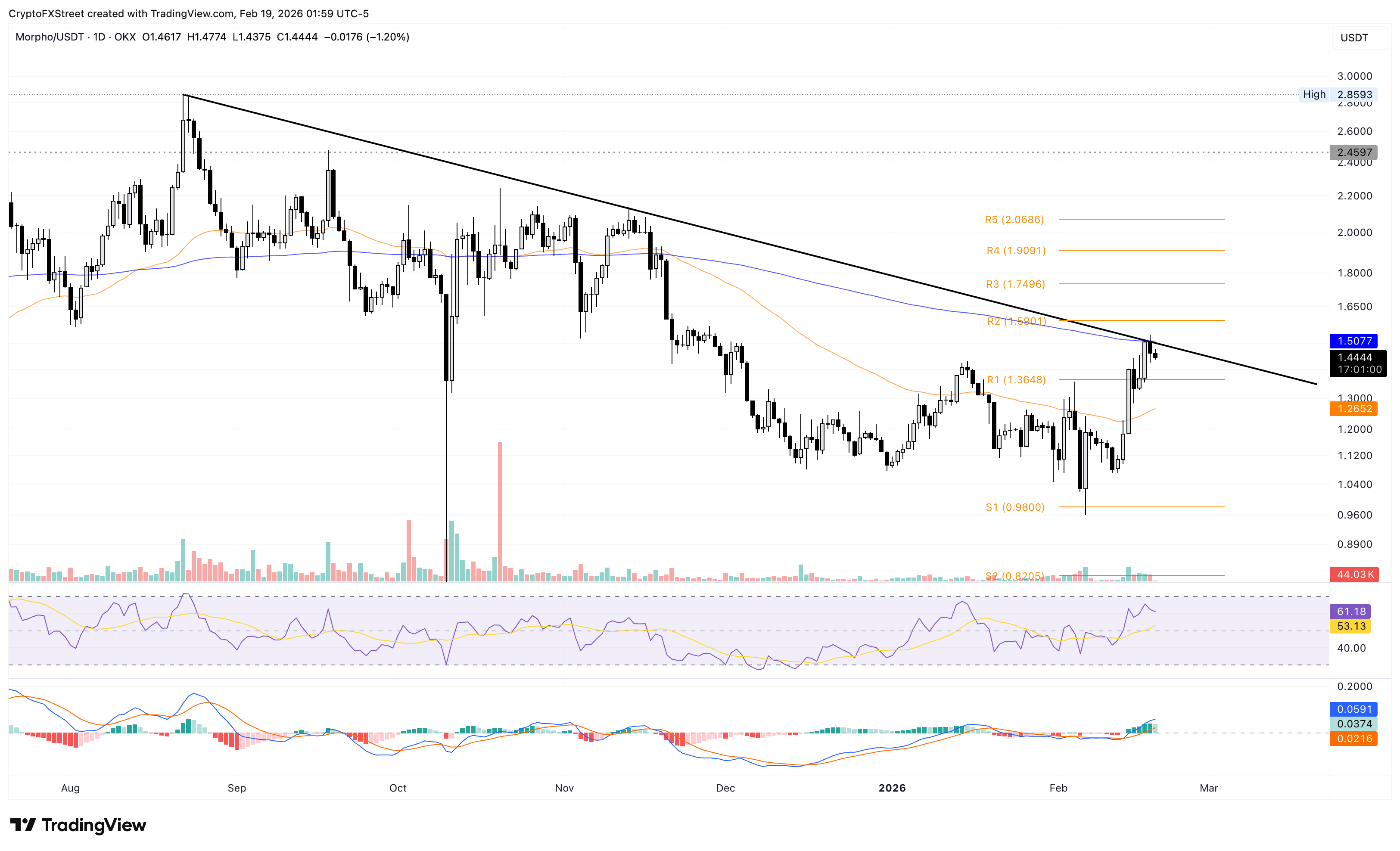Morpho extends its decline by 1% at press time on Thursday, following a 3% drop on the previous day. The 200-day EMA at $1.50 remains a key resistance level that capped the 10% surge on Tuesday, alongside a trendline connecting the August 22 and November 13 highs on the daily logarithmic chart.