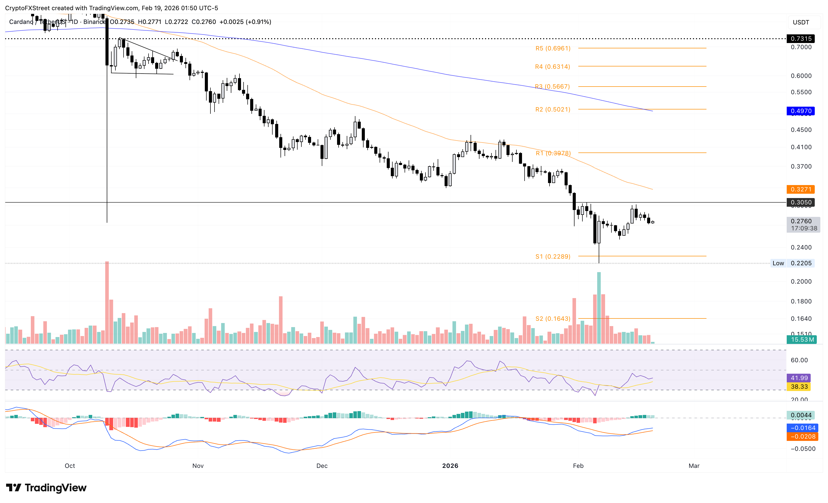 Cardano remains in survival mode, as previously reported by FXStreet. At the time of writing, ADA is trading near $0.2750 on Thursday, with a minor intraday recovery of almost 1%.