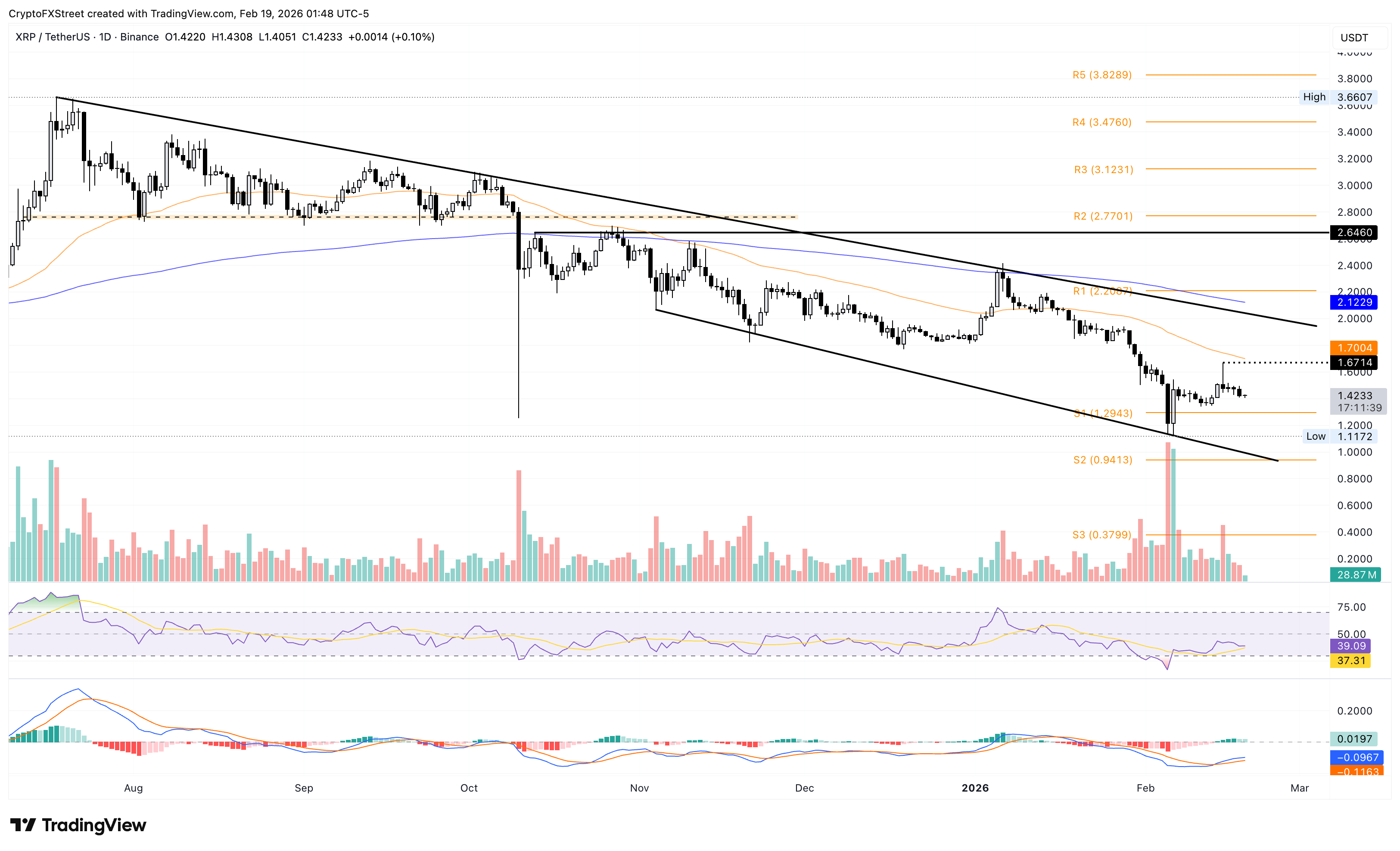 Ripple is trading around $1.42 at press time on Thursday, holding ground after losing over 3% the previous day. XRP is extending its downside move after a surge in selling pressure around $1.67 on Sunday. The short-term pullback indicates the path of least resistance is toward the S1 pivot point at $1.29.