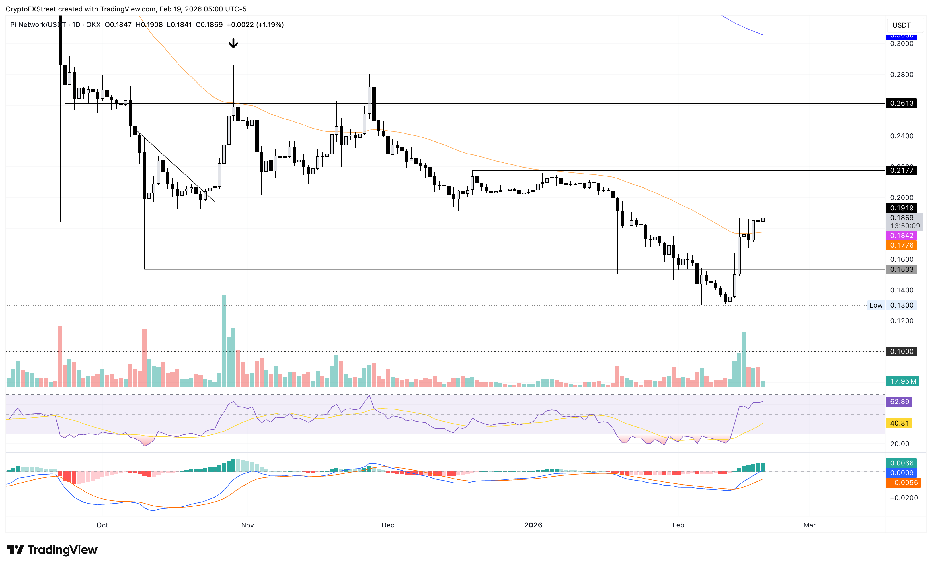 To further extend the recovery, the Pi token must achieve a decisive daily close above $0.1919, which would open the door toward the December 19 high at $0.2177.