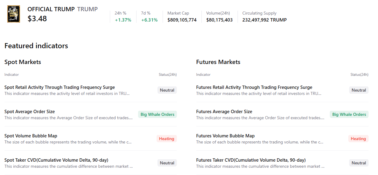This suggests a lack of unified conviction, signaling that TRUMP remains in consolidation until a clear catalyst drives a decisive directional move.