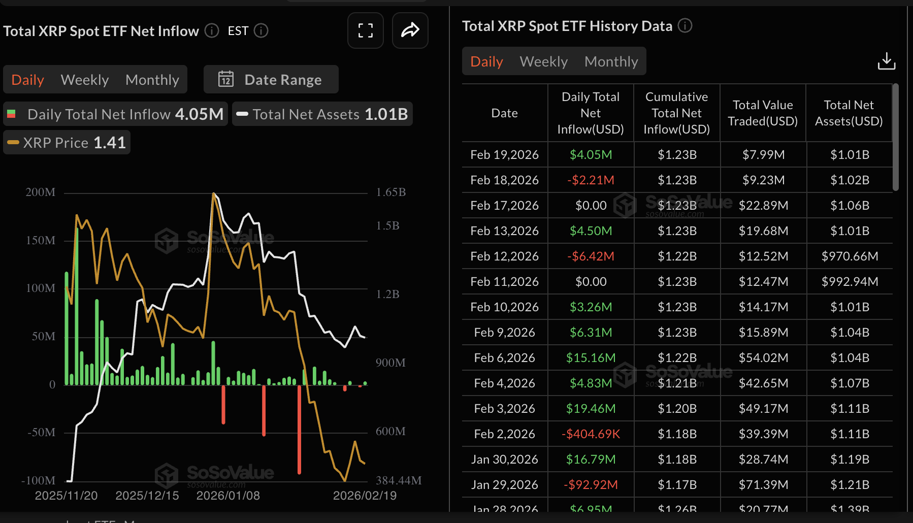 XRP ETF flows | Source: SoSoValue