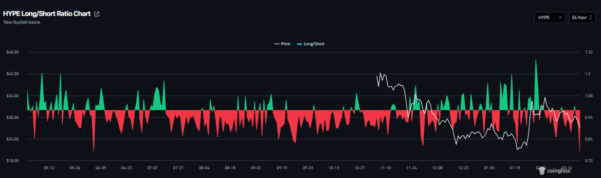 HYPE long-to-short ratio chart. Source: Coinglass