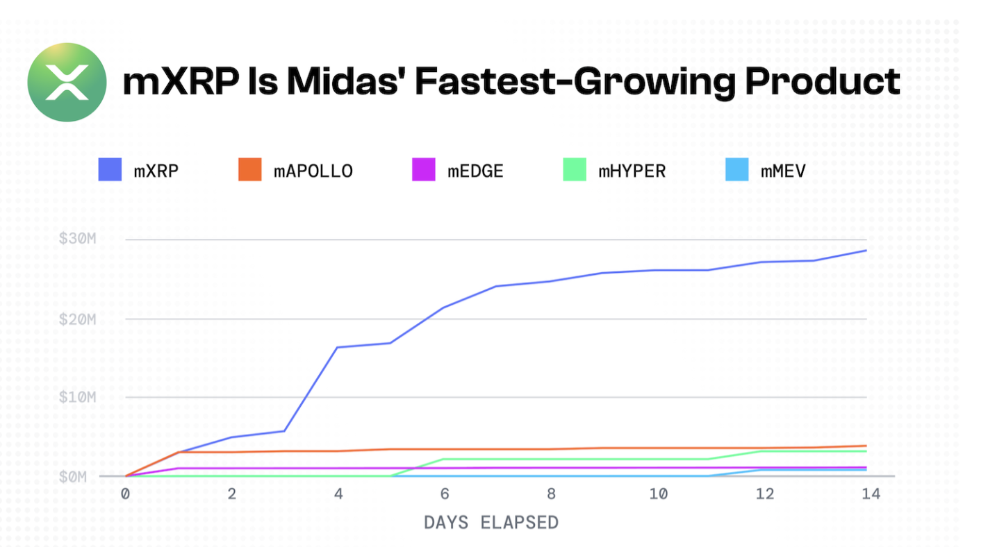 By October, mXRP was the fastest-growing yield product issued by Midas, outpacing earlier-launched products including mAPOLLO, mEDGE, mHYPER, and mMEV.