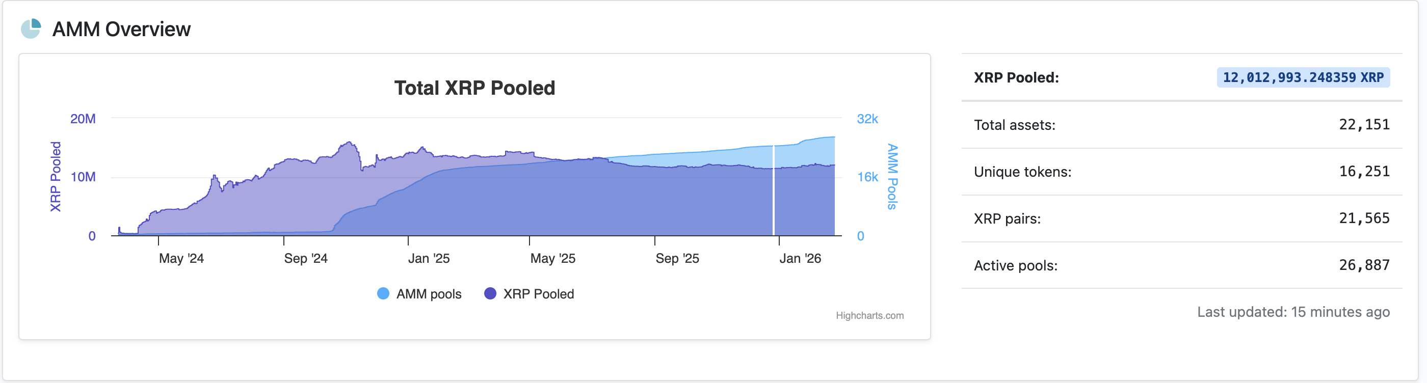 Ripple’s strategic focus on-chain DeFi is transforming the XRP Ledger into a powerhouse in the sector, driven by a notable increase in liquidity. The protocol’s automated market maker (AMM) infrastructure is experiencing significant growth, with nearly 27,000 active liquidity pools, facilitating seamless trading across a growing ecosystem with more than 16,000 unique tokens.