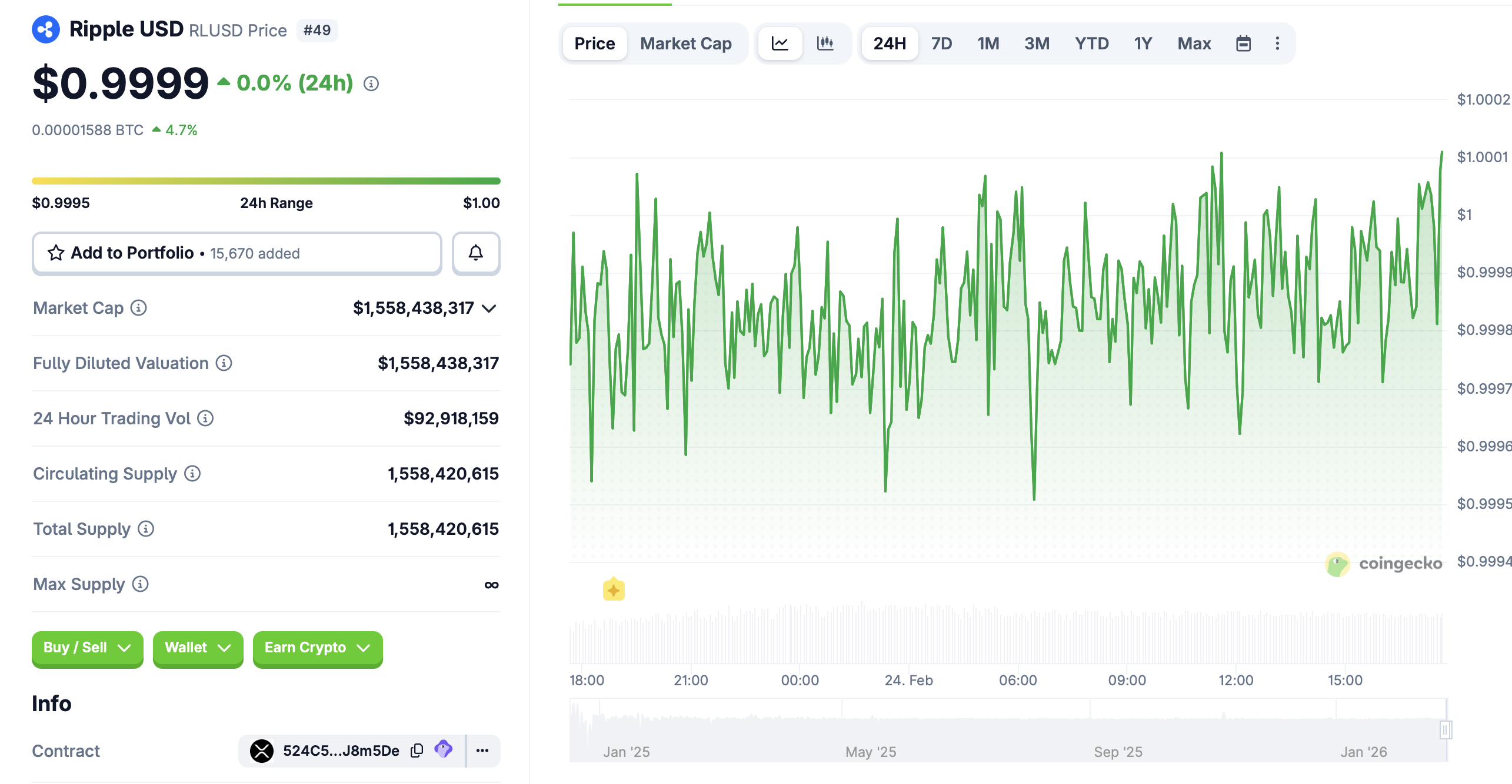 RLUSD market capitalization stands at $1.5 billion, according to CoinGecko, and is available on both the XRP Ledger and Ethereum blockchains.
