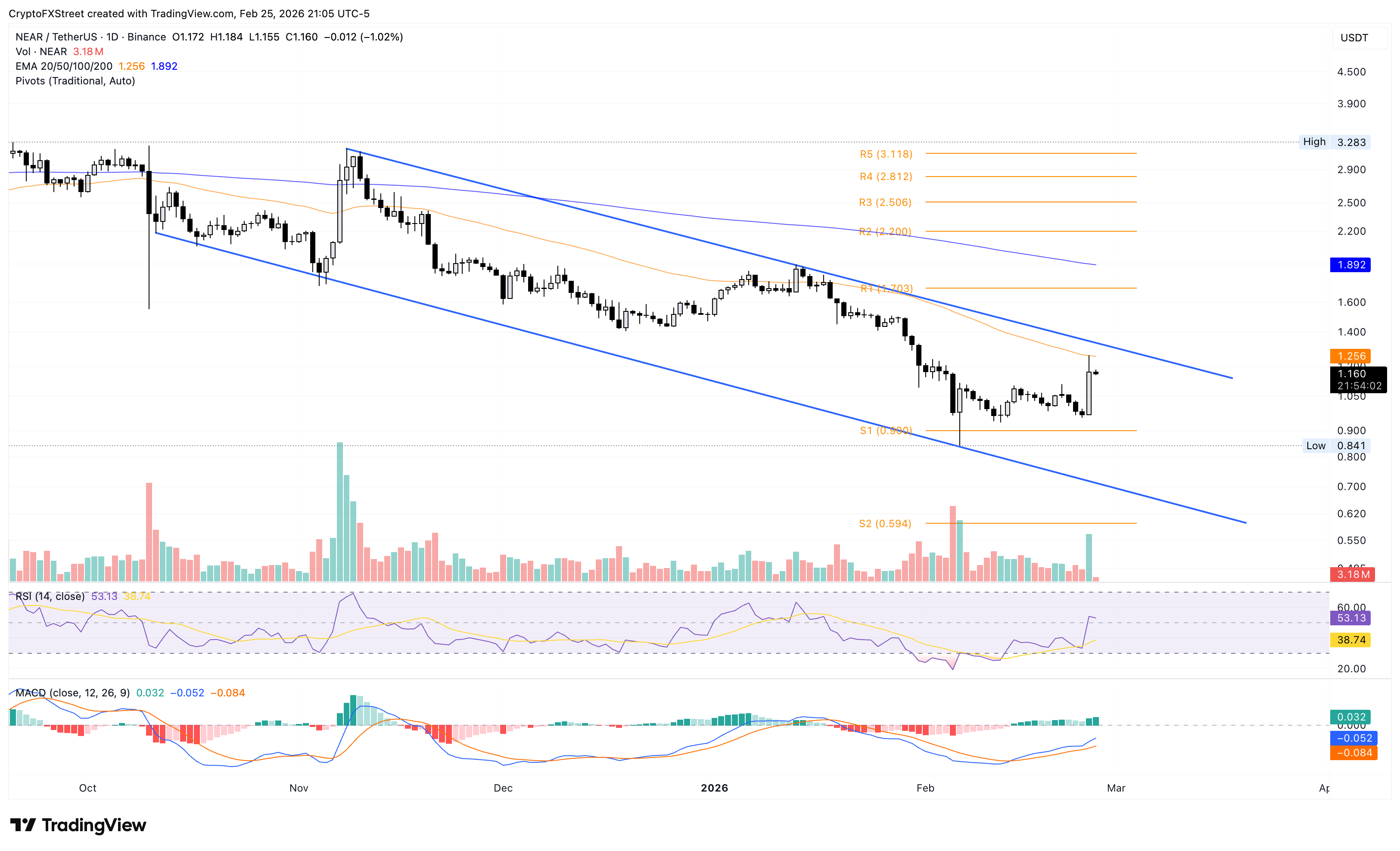 Near Protocol reclaimed the $1.00 mark with a 21% rally on Wednesday. At the time of writing, NEAR is down 1% on Thursday, as the 50-day EMA at $1.25 capped the upcycle within a larger falling channel pattern.