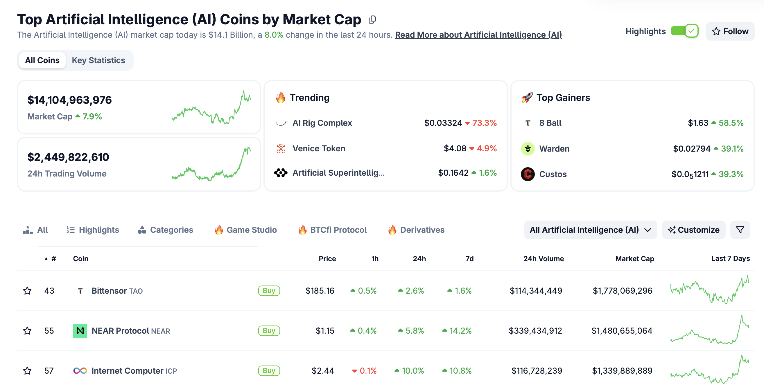 • The crypto AI sector is making a comeback, with total market capitalization rising above $14 billion.