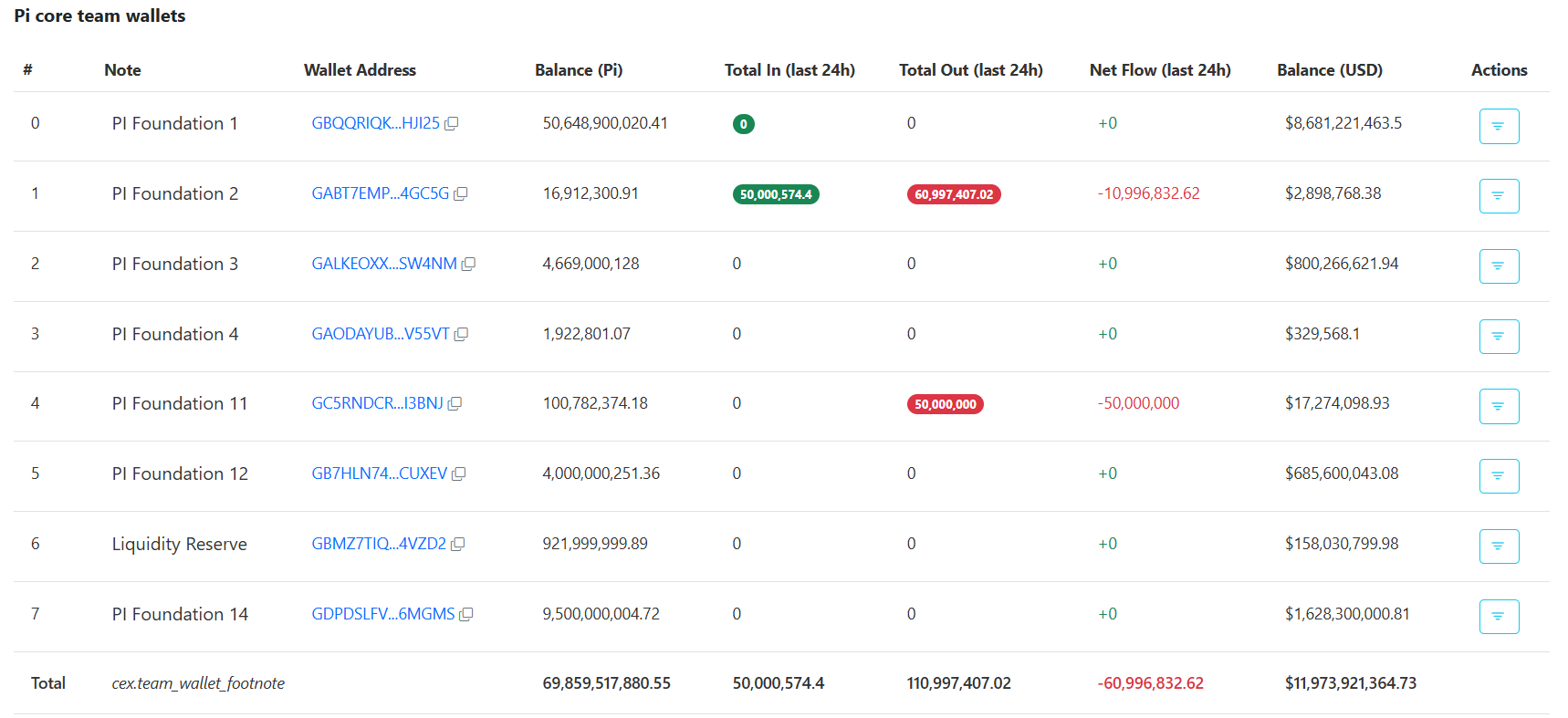 Pi core team wallets data. Source: PiScan