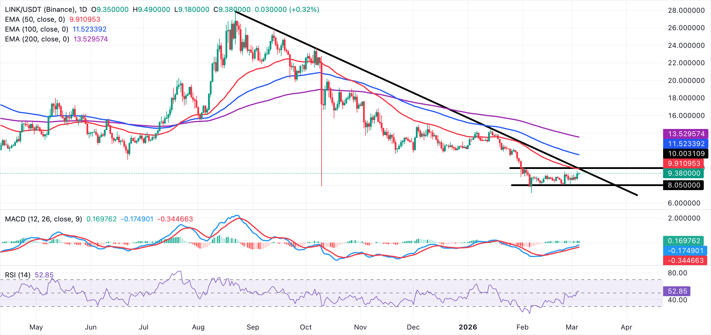Chainlink (LINK) hovers around $9.38 at the time of writing on Thursday. This comes as crypto investors bravely navigate the Middle East war, with the United States (US) and Israel ramping up attacks on Iran and sending jitters across global markets.