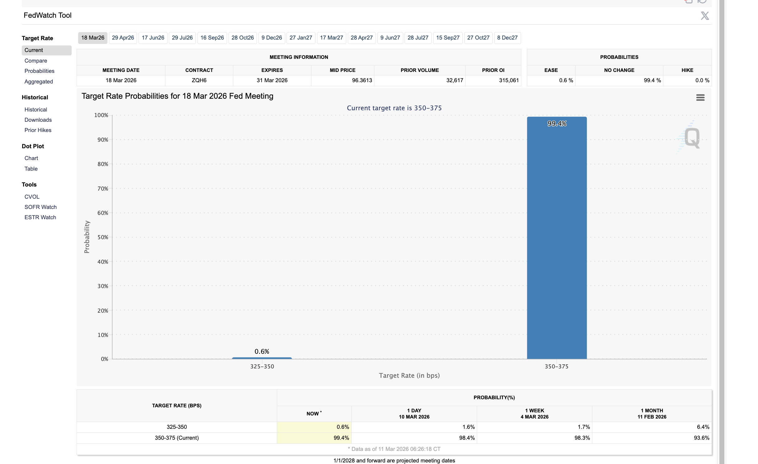 Typically, a lower-than-expected CPI data could increase the likelihood of a rate cut, directing liquidity into high-risk assets such as stocks and Bitcoin. However, the FedWatch tool shows a 99% likelihood that the Fed will keep interest rates unchanged.