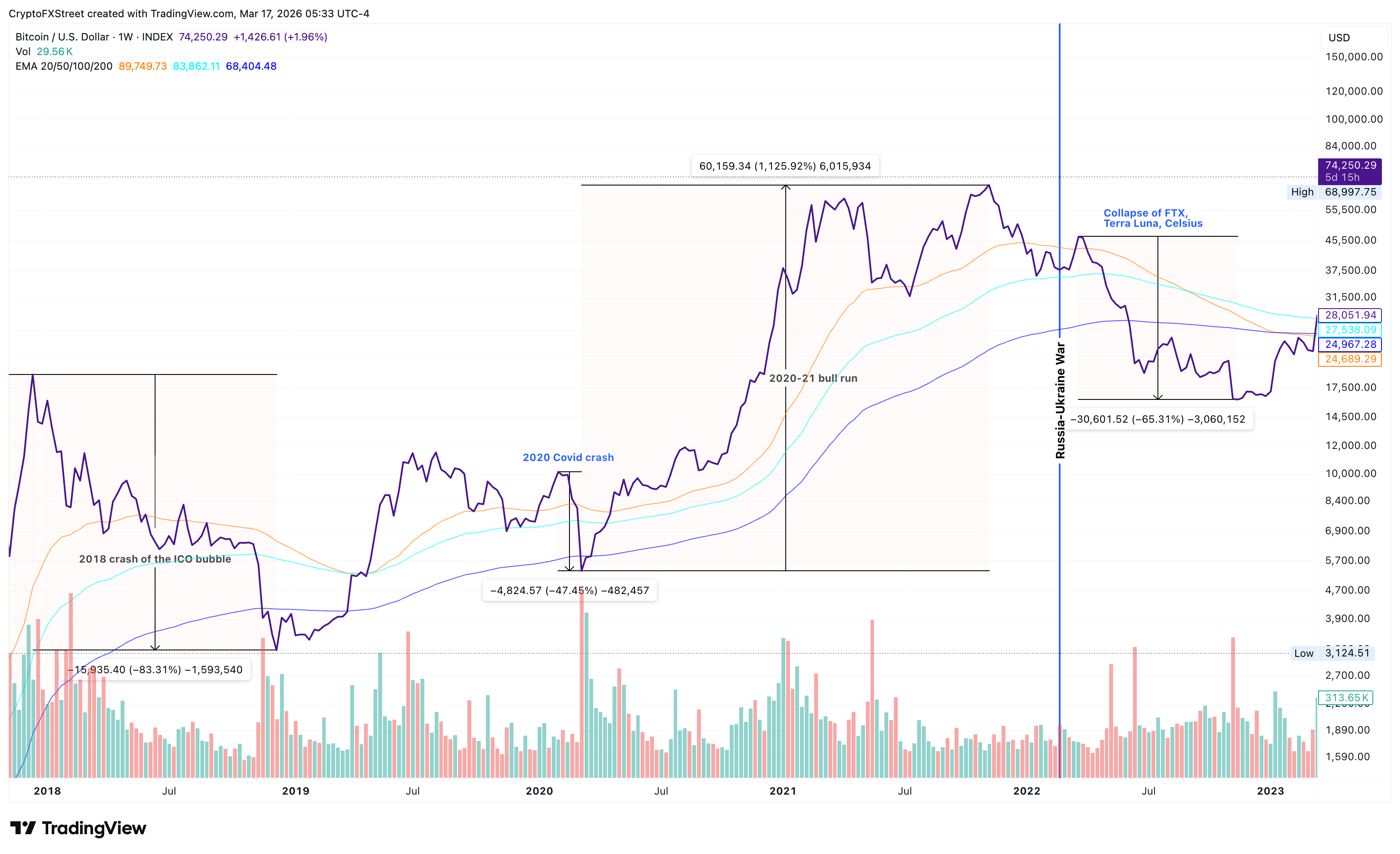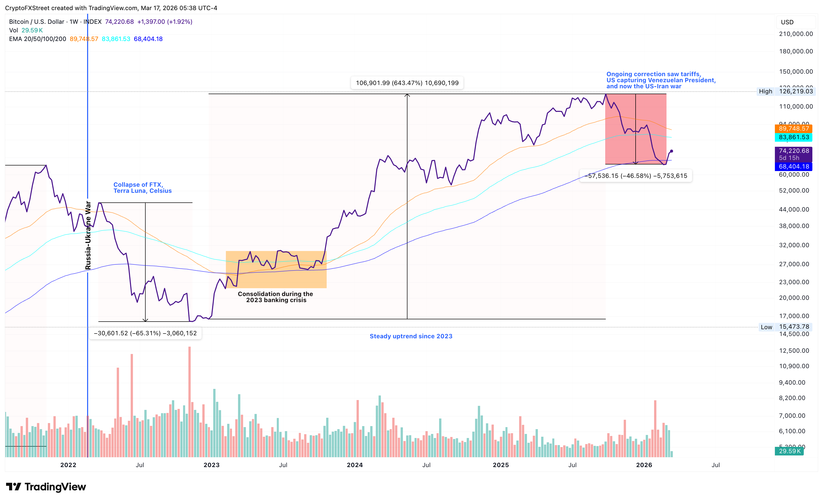 Bitcoin is once again navigating another crisis by defying the broader risk-off sentiment. History shows a clear pattern: every major crisis – from exchange collapses like Mt. Gox and FTX to global shocks like COVID-19 – has stress-tested Bitcoin and, ultimately, reinforced its long-term narrative. With the Iran war and all its ramifications for the global economy still uncertain, a new test for Bitcoin looms this 2026. Will this one set the stage for another bull cycle?