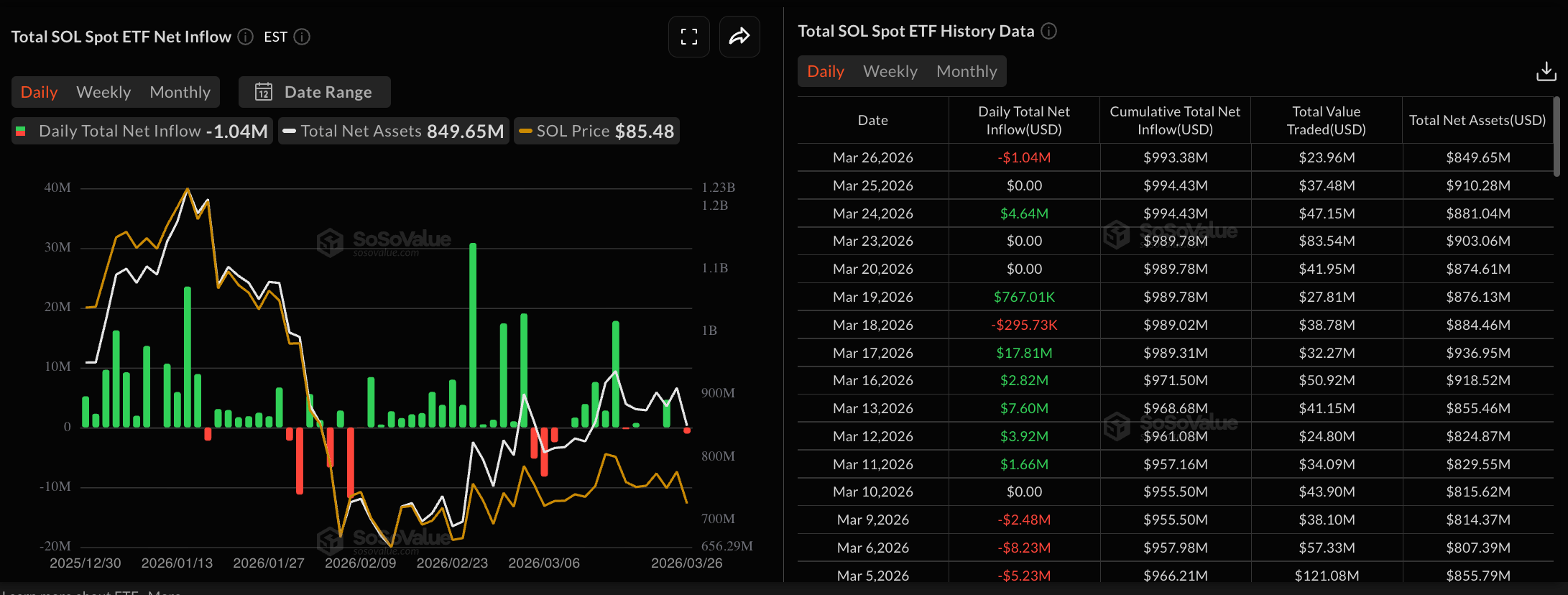 SOL ETFs data. Source: Sosovalue